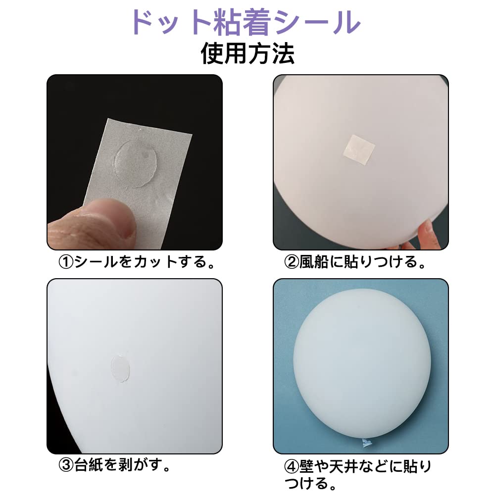 ドット粘着シール:シールの直径は1.5cm、1巻に約100枚があり、壁・天井・ガラス・車などにバルーンを固定できます。