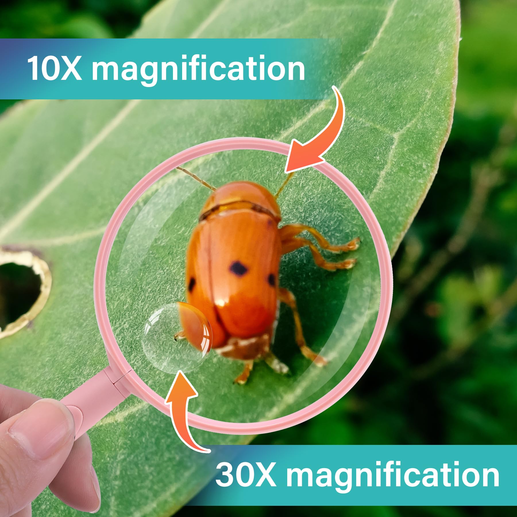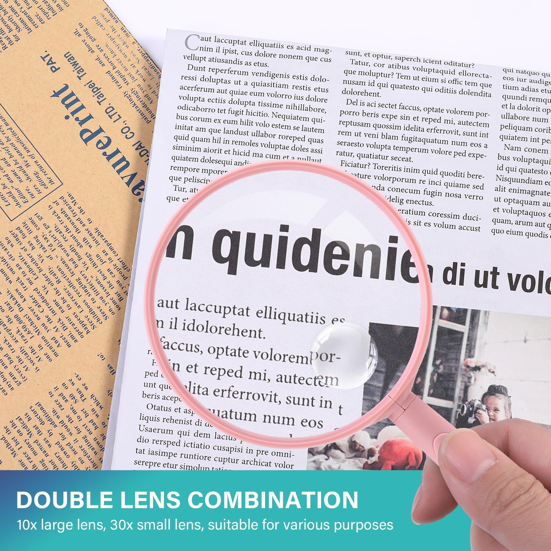拡大鏡 10倍と30倍 手持ち ルーペ 大きく 見やすい 軽い シンプル 直径75mmで読み物に便利なサイズ(ピンク), 0503-Pink