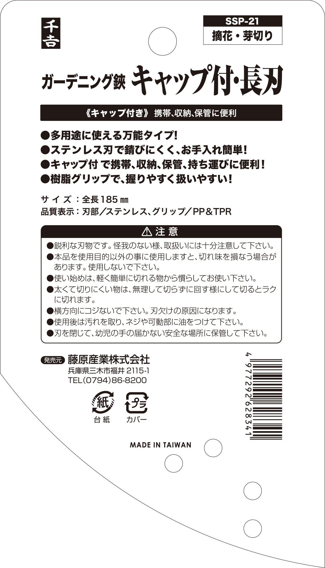 【新着特価】千吉 ガーデニング鋏 キャップ付長刃 SSP-21