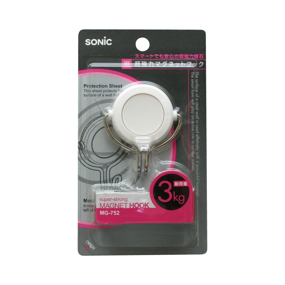 ソニック フック 超強力 マグネットフック 3KG ブリスター 白 MG-752-W スマートでも安心の超強力マグネットフック! 上下左右、自由自在に動く可動フック 目安耐荷重:垂直方向約3kg 水平方向約2kg 磁石側に取り付け面を傷つけにくい保護シート付 スマートでも安心の超強力マグネットフック! 上下左右、自由自在に動く可動フック。 目安耐荷重:垂直方向約3kg 水平方向約2kg。 磁石側に取り付け面を傷つけにくい保護シート付。