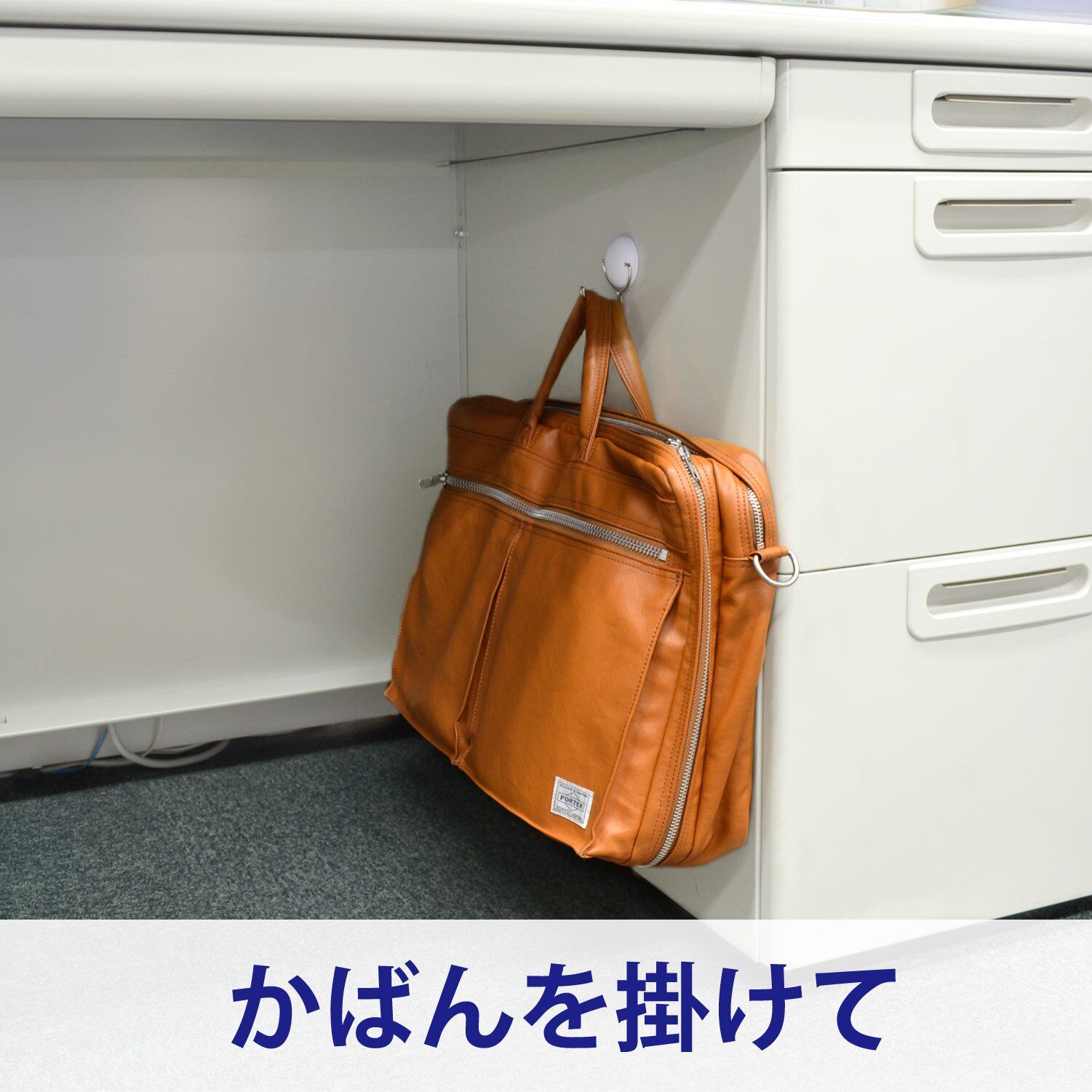 またフックの形をまっすぐ、長さを長め(4cm)にしてカバンを掛けやすく設計。