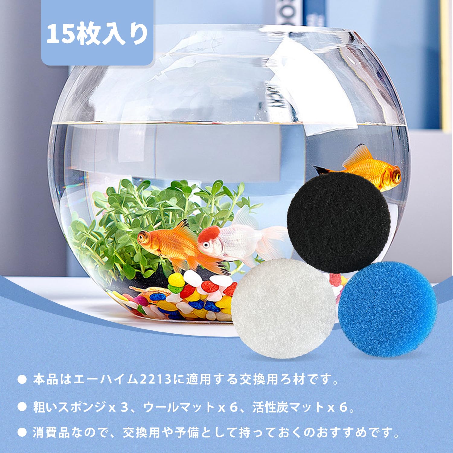 ろ過フィルター ウールマット 粗目 活性炭 細目フィルターパッド エーハイム クラシック2213(ろ材コンテナ付き)に適用 15枚入 水槽用品