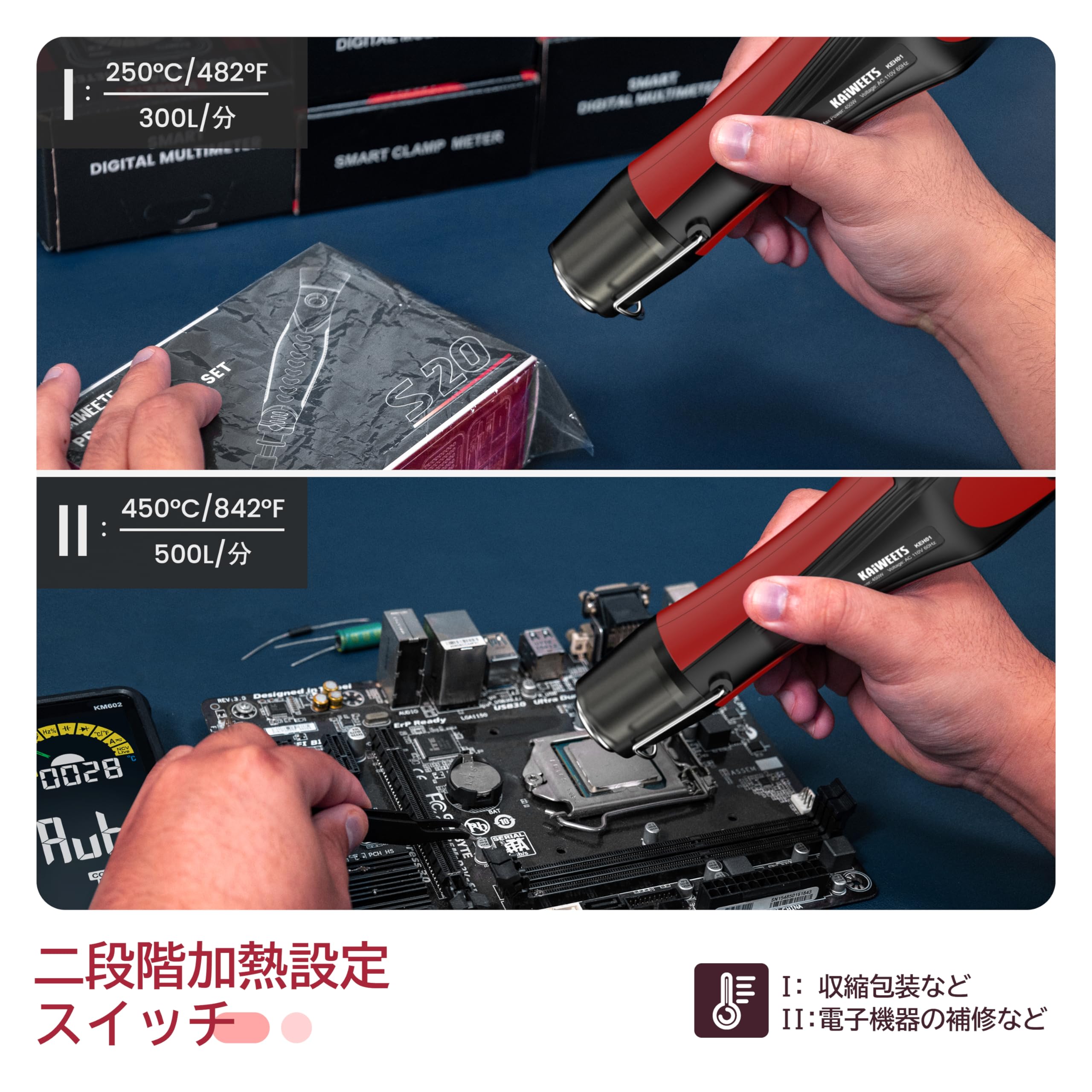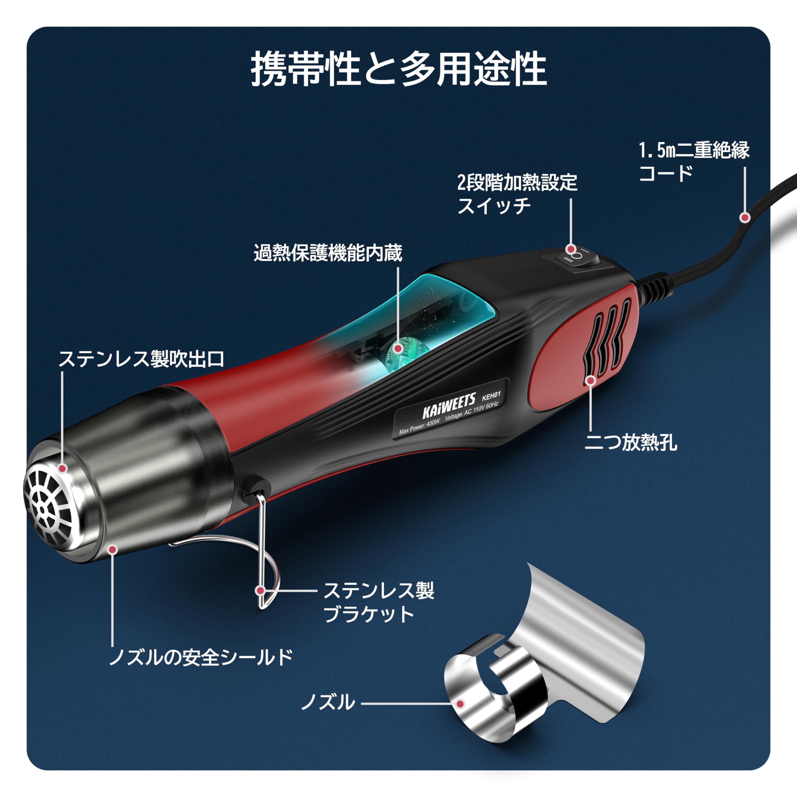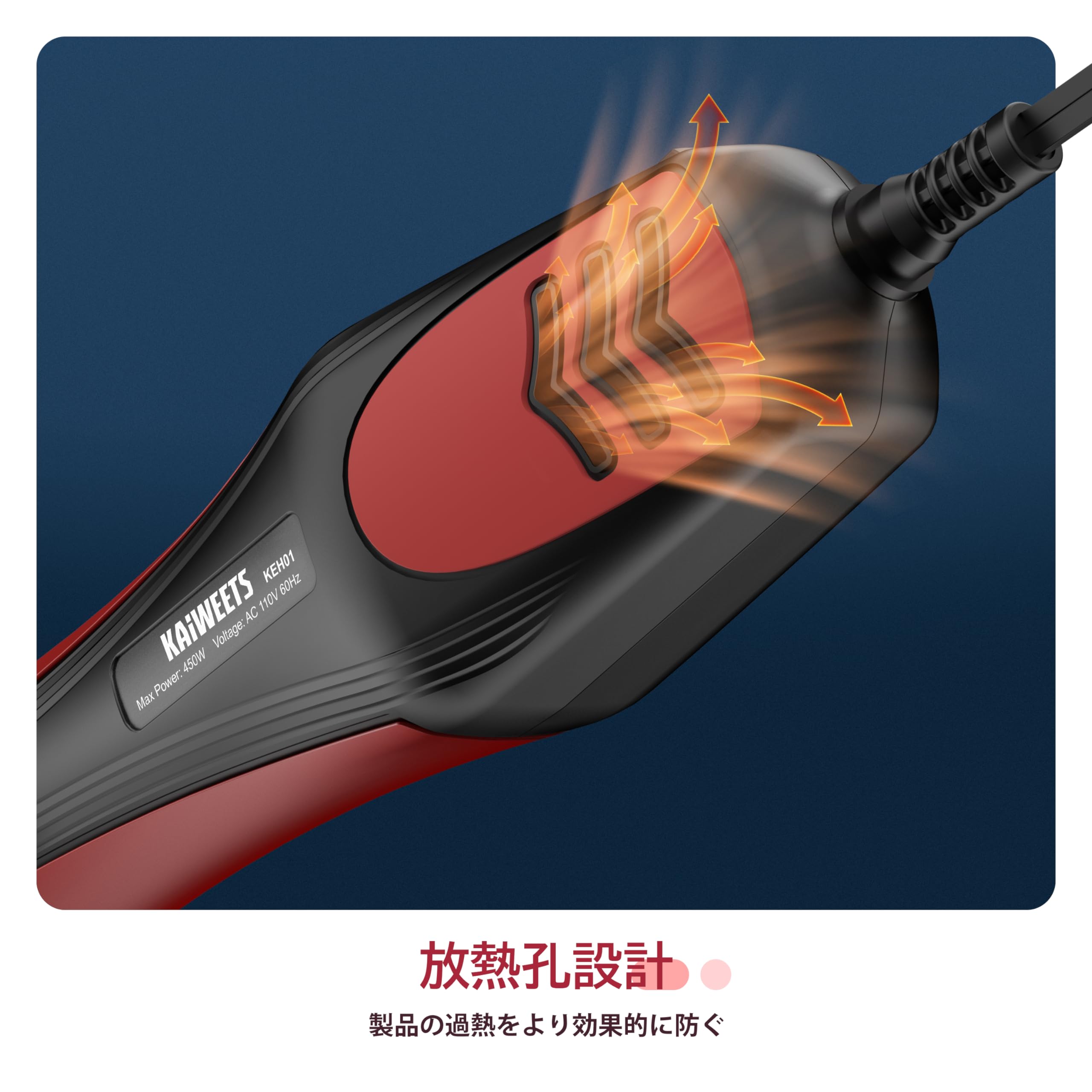 KAIWEETS 450W エンボスヒーター 小型ヒートガン 250℃-450℃ 2段階調温可能 急速加温 フェンダー曲げ 収縮チューブ シュリンク包装 塗装の乾燥 塩ビの溶接 補修 熱処理用ハンディ熱風機 ノズル付属
