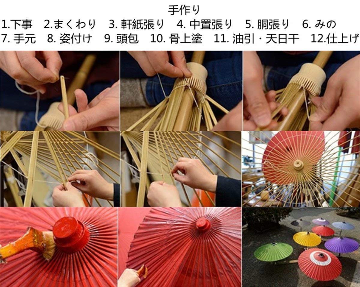 素材:和傘の骨組みは竹、芯棒は木、表面の部分は紙です ひとつずつが異なる表情を持ち、古くからの日本にあった雨の音、季節の香りをお楽しみいただける、絶品の紙傘を仕上げます