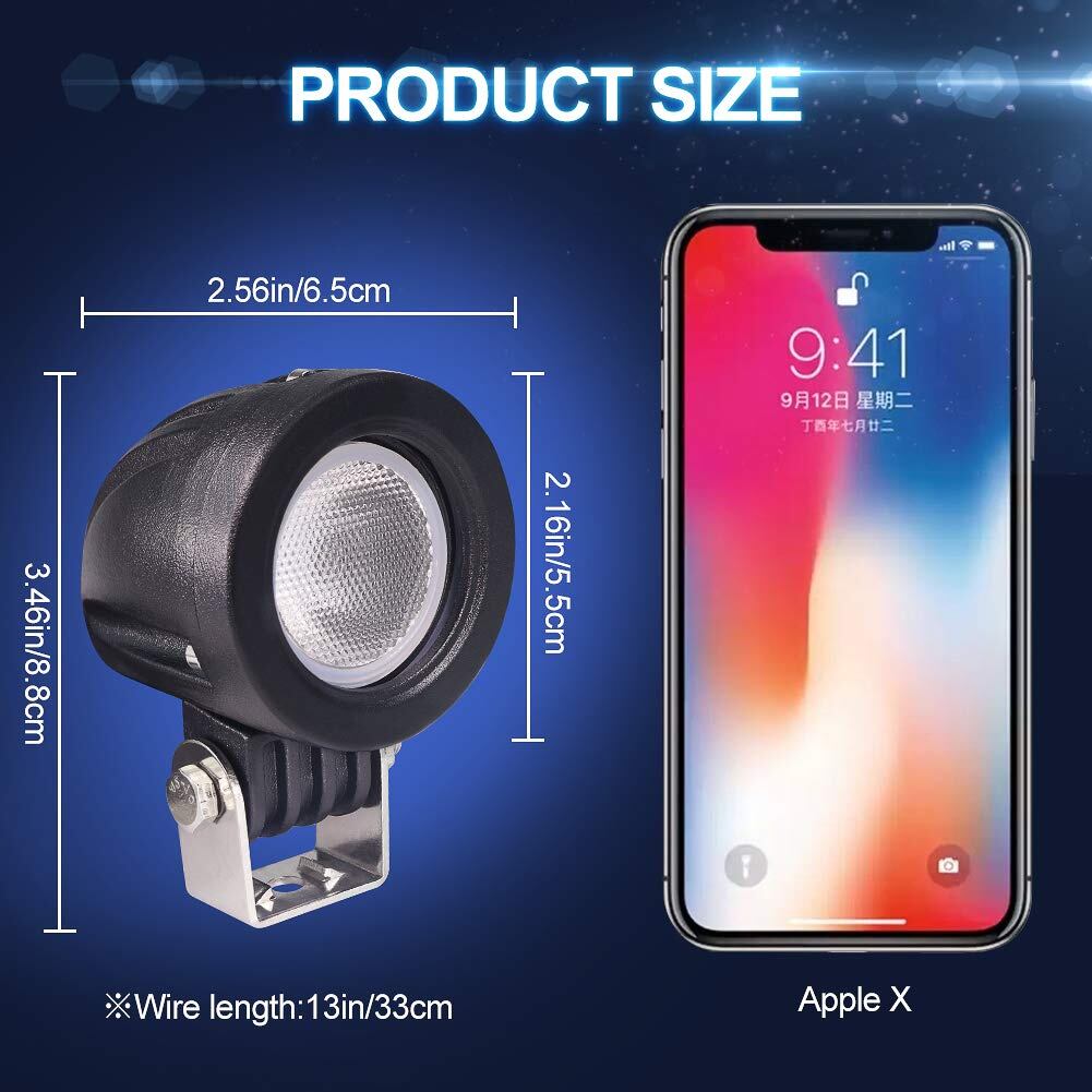 X-STYLE 10W LEDワークライト 作業灯 白 バイクフォグランプ 12V 24V 6000K 高輝度・防水・長寿命・耐衝撃 オートバイ/機械/自動車/トラック用品 汎用 車外灯 ホワイト 丸型 広角 スイッチ付き 2個セット