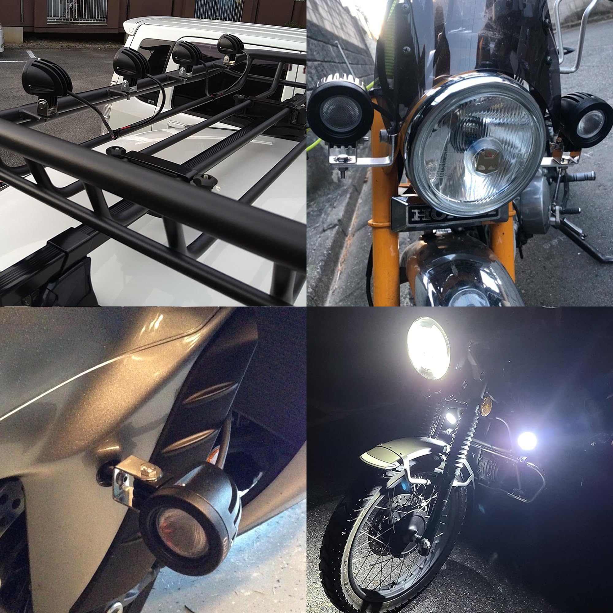 【在庫のみ】X-STYLE 10W LEDワークライト 作業灯 白 バイクフォグランプ 12V 24V 6000K 高輝度・防水・長寿命・耐衝撃 オートバイ/機械/自動車/トラック用品 汎用 車外灯 ホワイト 丸型 広角 スイッチ付き 2個セット