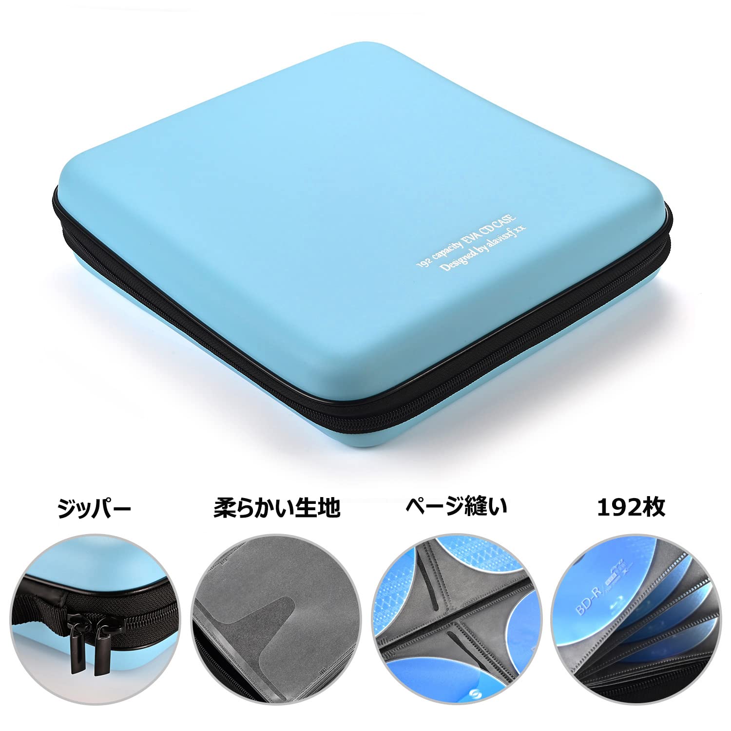192枚収納 CDケースポータブルEVA blu-ray ディスク収納ケース 大容量 DVD/VCD 収納 (192枚, スカイブルー192)