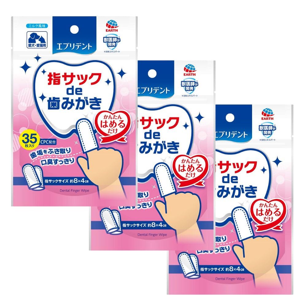 エブリデント 指サックde歯みがき 35枚×3個セット ミルク風味 犬猫用 歯みがきシート はみがきシート 3個パック まとめ買い(アース・ペット)