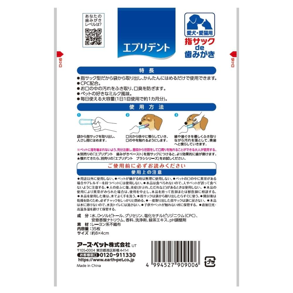 【人気】エブリデント 指サックde歯みがき 35枚×3個セット ミルク風味 犬猫用 歯みがきシート はみがきシート 3個パック まとめ買い(アース・ペット)