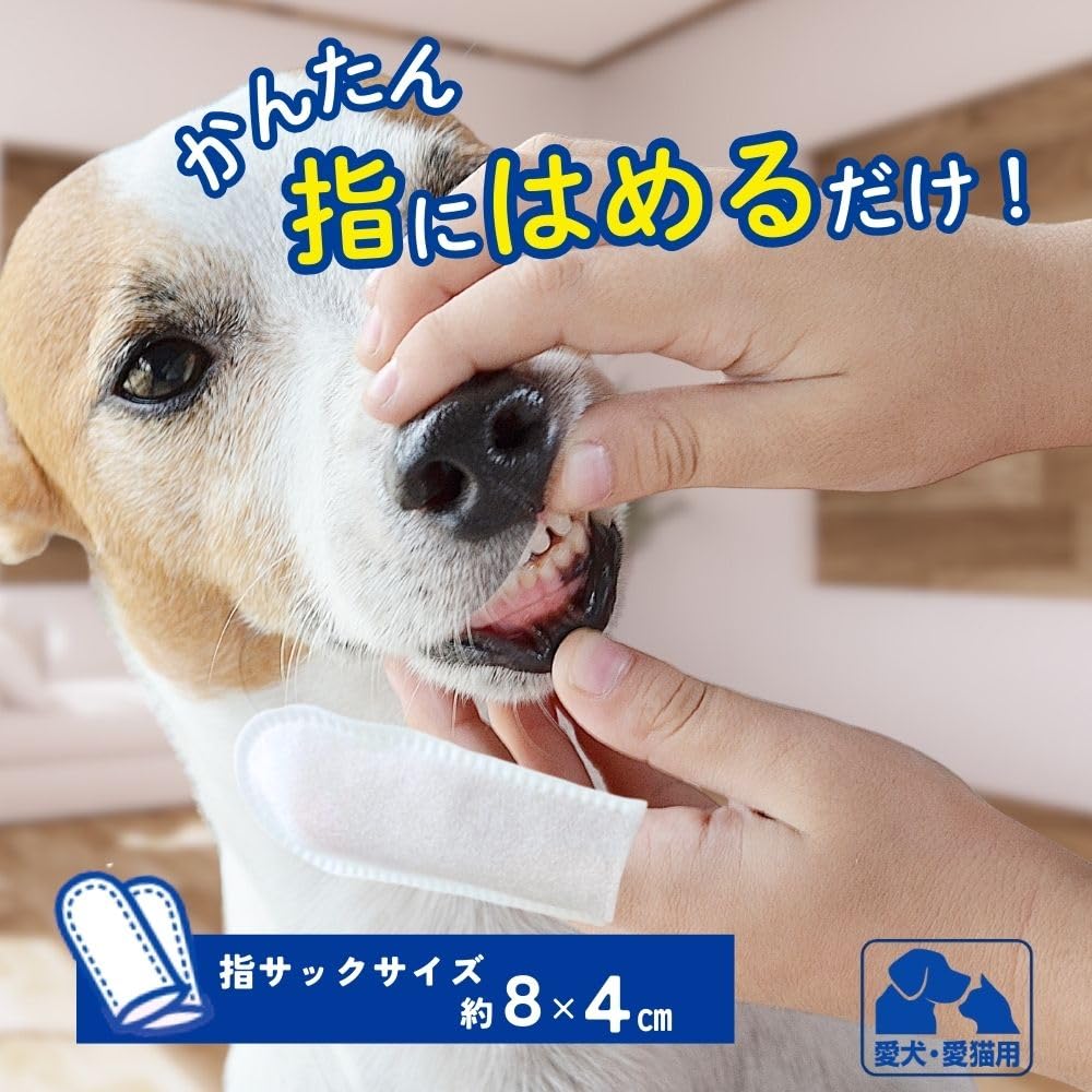 指サック型だから、袋から取り出して簡単にはめるだけで使用出来るウエットタイプの歯みがきシートです。 お口の中の汚れをふき取り、口臭を防ぎます。 ペットの好きなミルク風味。 毎日使える大容量。(1日1回使用で約1ヶ月分)