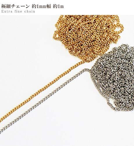 極細のチェーンです。 シンプルなデザインなので どんなチャームでも相性抜群♪ レジンの封入やネイルパーツにもお使い頂けるチェーン。 販売のCカンをお使いいただけましたら アクセサリーチェーンとしも♪ ネックレスやブレスレットのチェーンにはもちろん ピアスやイヤリングなどのパーツとしてもお使い頂けます♪ 1mカット済みなので お好みの長さに合わせてお作り頂けます♪