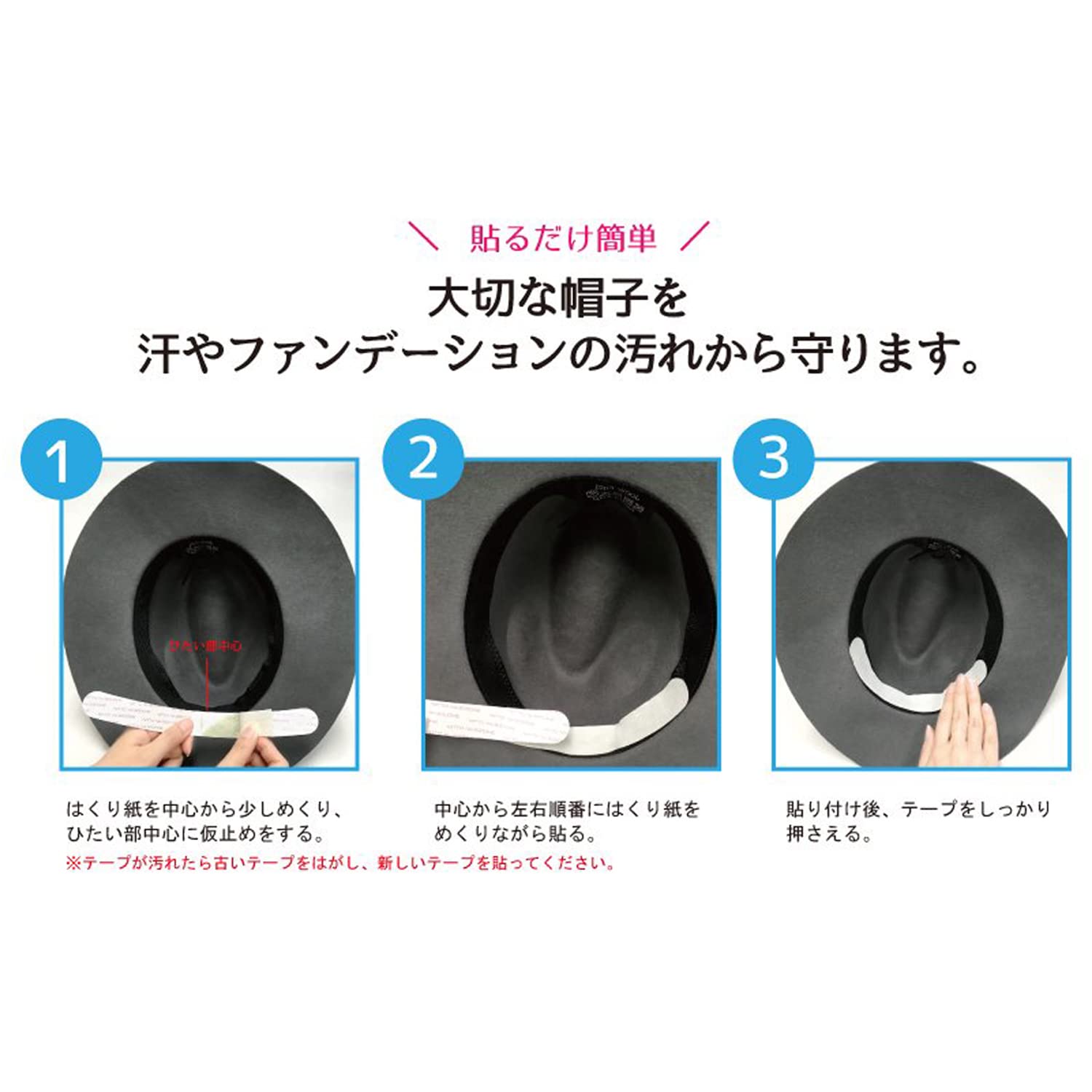 帽子 内側 の 額 が当たる部分に 貼り付け することで、大切な 帽子 を 汗 や ファンデーション の 汚れ から守ります。