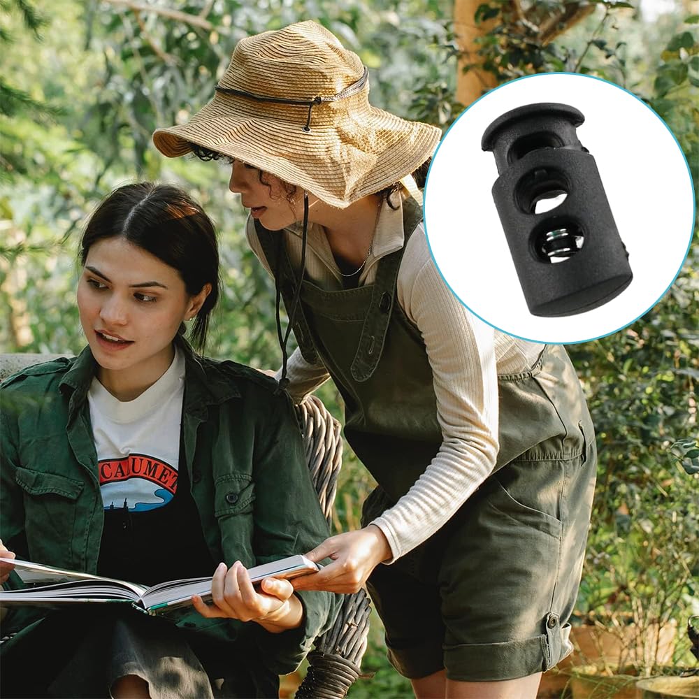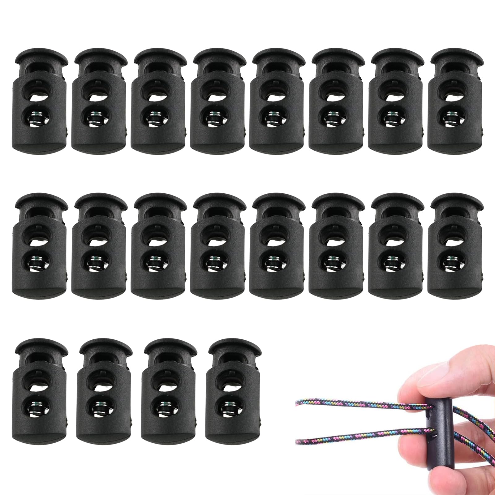 サムコス スプリングコードストッパー (20個入り)樽型2つ穴 プラスチック製 コードロック 紐止め 交換 補修用リュックサック 運動シューズなど ロープ ストッパー (ブラック)