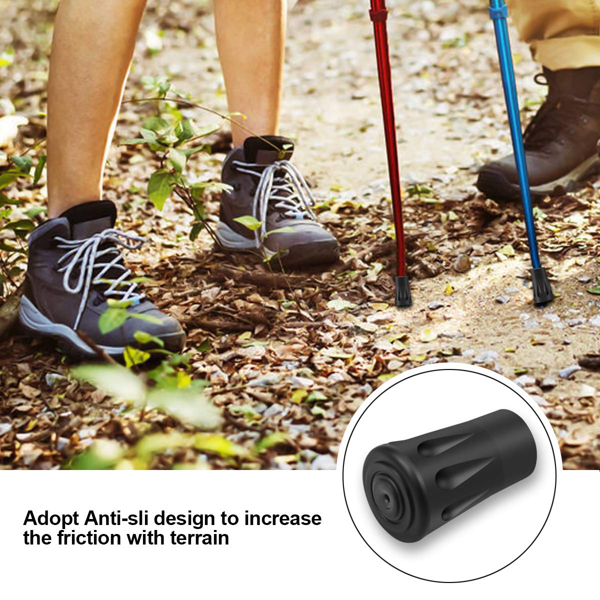 ラバーキャップ は、トレッキングメタルチップを保護し、長期使用のためにトレッキングチップと道路の間の摩擦を減らします。 ラバーキャップ はセメント道路、岩だらけの道路、滑りやすい道路、急な道路に適しています。