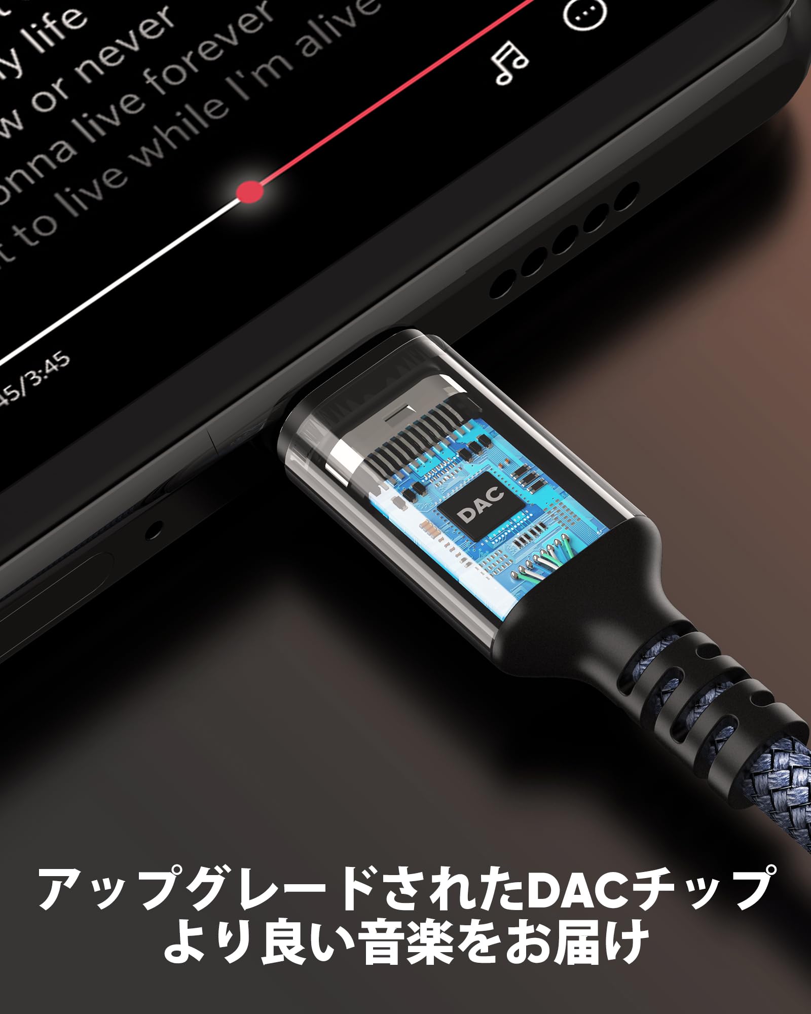 DAC搭載:Highwings USB Type C to 3.5mmケーブルはDAC搭載し、オーディオと完全に同期した超高音質を伝送し、一音一音を明瞭に伝えます。厚みのあるメタルコネクターは、煩わしいビープ音やノイズ、モノラルのない強固な接続をし、HiFi音楽の世界を高品質で快適に楽しむことができます。