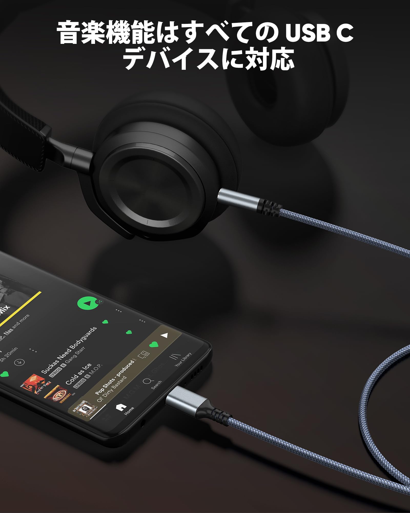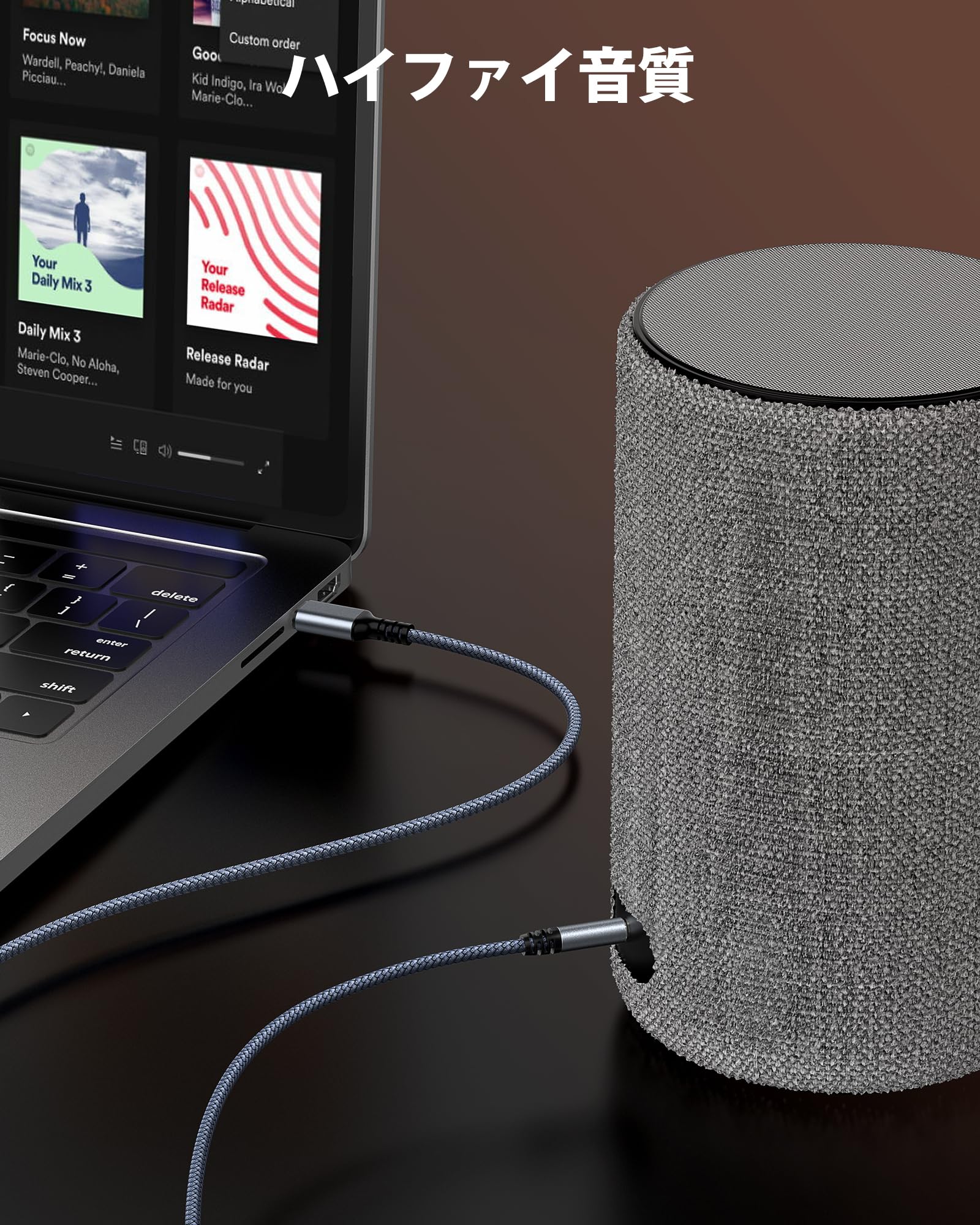 Highwings AUXケーブル タイプc USB C to 3.5mm テレオケーブル 音声変換ケーブル DAC搭載 ハイレゾ音質 Type C to 3.5mm オーディオケーブル Hi-Fi音質 ナイロン編み 高耐久性 ヘッドホン/iPhone 15シリーズ/車載用/PC/MP3/スマホ/ステレオ/スピーカー/カーステレオなどに対応(グレー, 1.2m)
