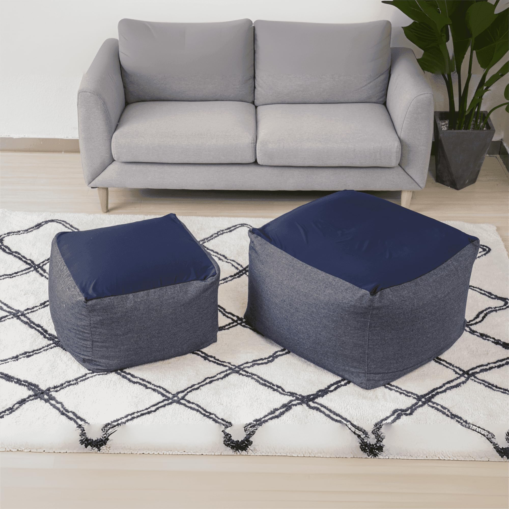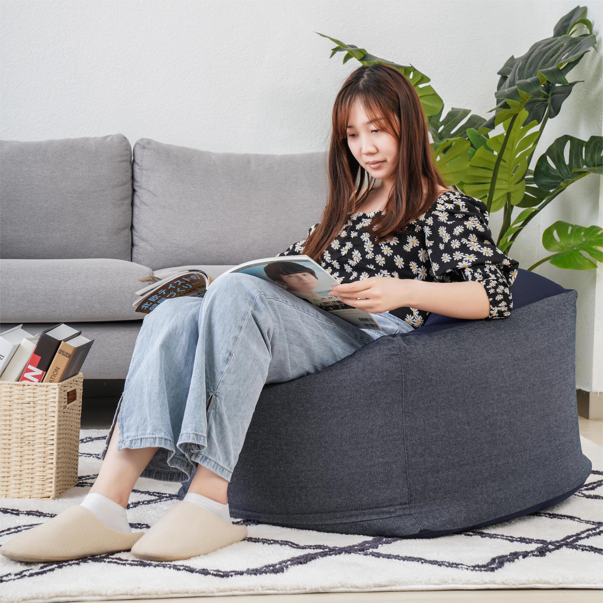 【インテリアに馴染むカバー】ジーンズブルーのシンプルな色はどんな部屋にも調和し、美しさを引き立てます。お部屋のインテリアに溶け込みつつ、使い勝手も抜群です。2つのビーズクッション カバーはサイズからお選びいただけます:50x50x35cmと65x65x45cm。