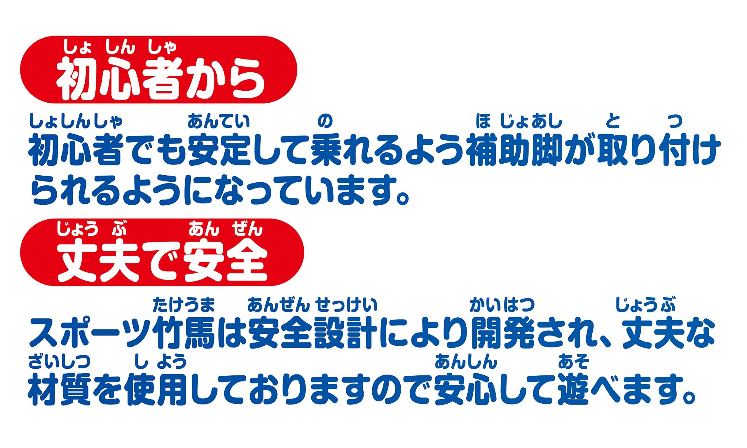 アガツマ(AGATSUMA)スポーツ竹馬 2段式 赤 近所の公園や、お外で遊ぶのにピッタリの竹馬です。 ポールの長さは135cmと155cmの2段階調節可能。 補助脚もついているので初めてのお子様にも最適です。 制限体重 80㎏ 組み立てる必要がある ●近所の公園や、お外で遊ぶのにピッタリの竹馬です。 ●ポールの長さは135cmと155cmの2段階調節可能です。 ●補助脚もついているので初めてのお子様にも最適です。 ●制限体重 80㎏ 安全警告 なし