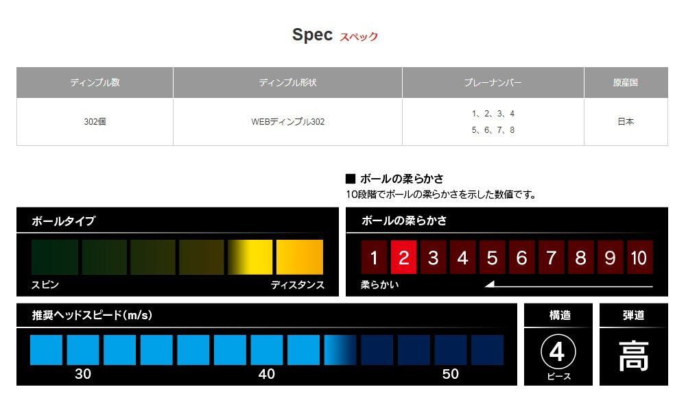 ディンプル数:302個 / ディンプル形状:WEBディンプル302