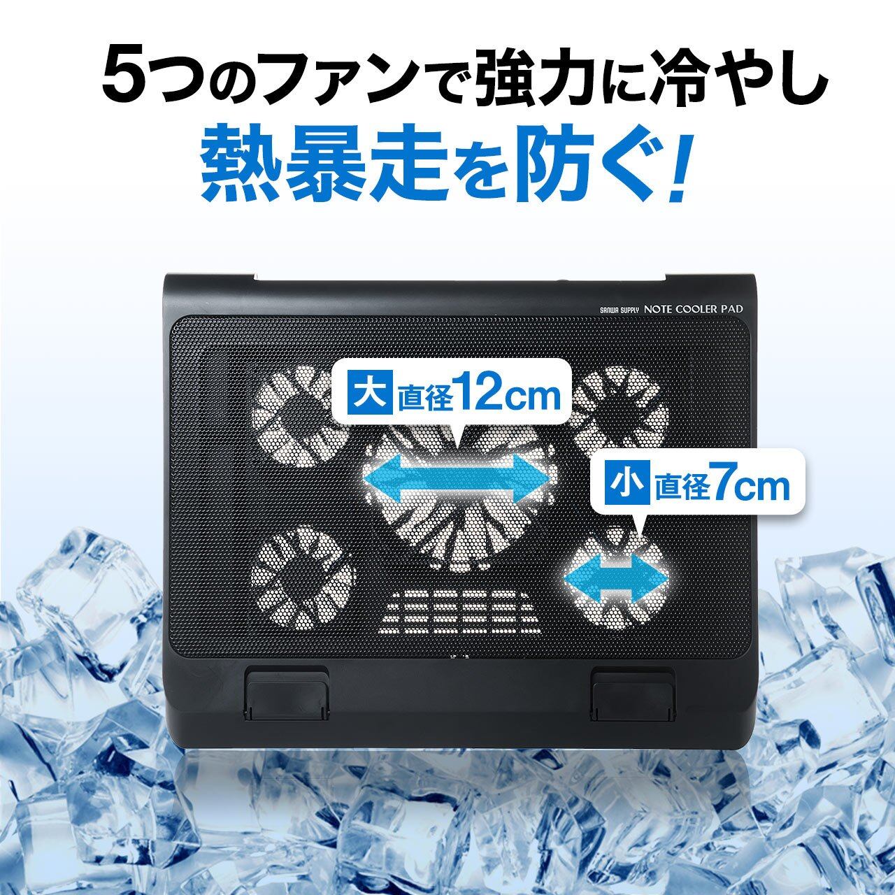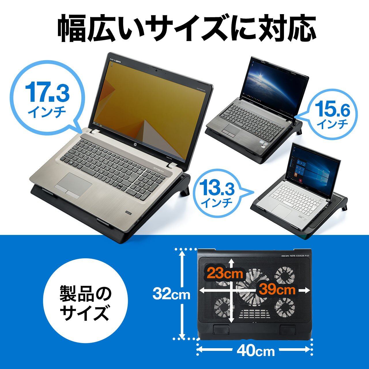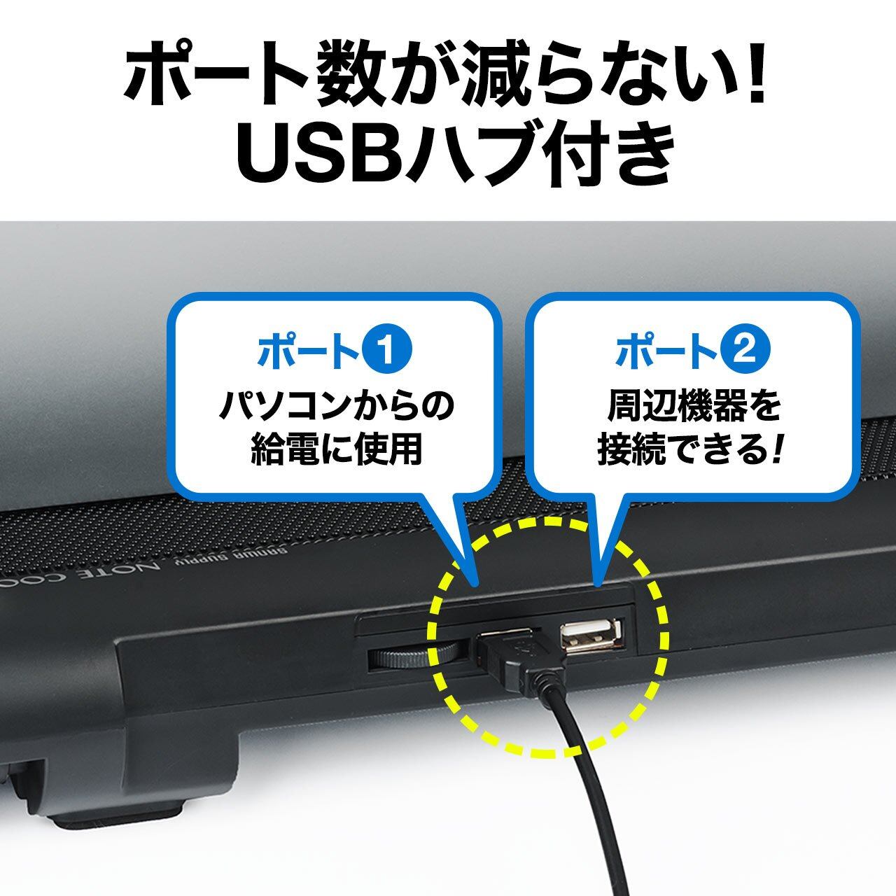 サンワダイレクト ノートパソコンクーラー 冷却台 静音 17インチ対応 USB給電 USBハブ付き スタンド付き 400-CLN025