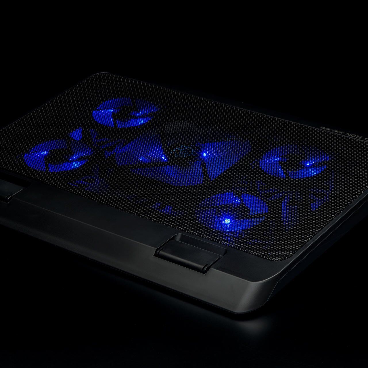 底面の内蔵スタンドを立てることでクーラーに傾斜をつけられます。視線が上がり、自然によい姿勢に導きます。●電源と接続するとブルーのLEDが光り、クールな雰囲気を演出します。※LEDを消灯することはできません。