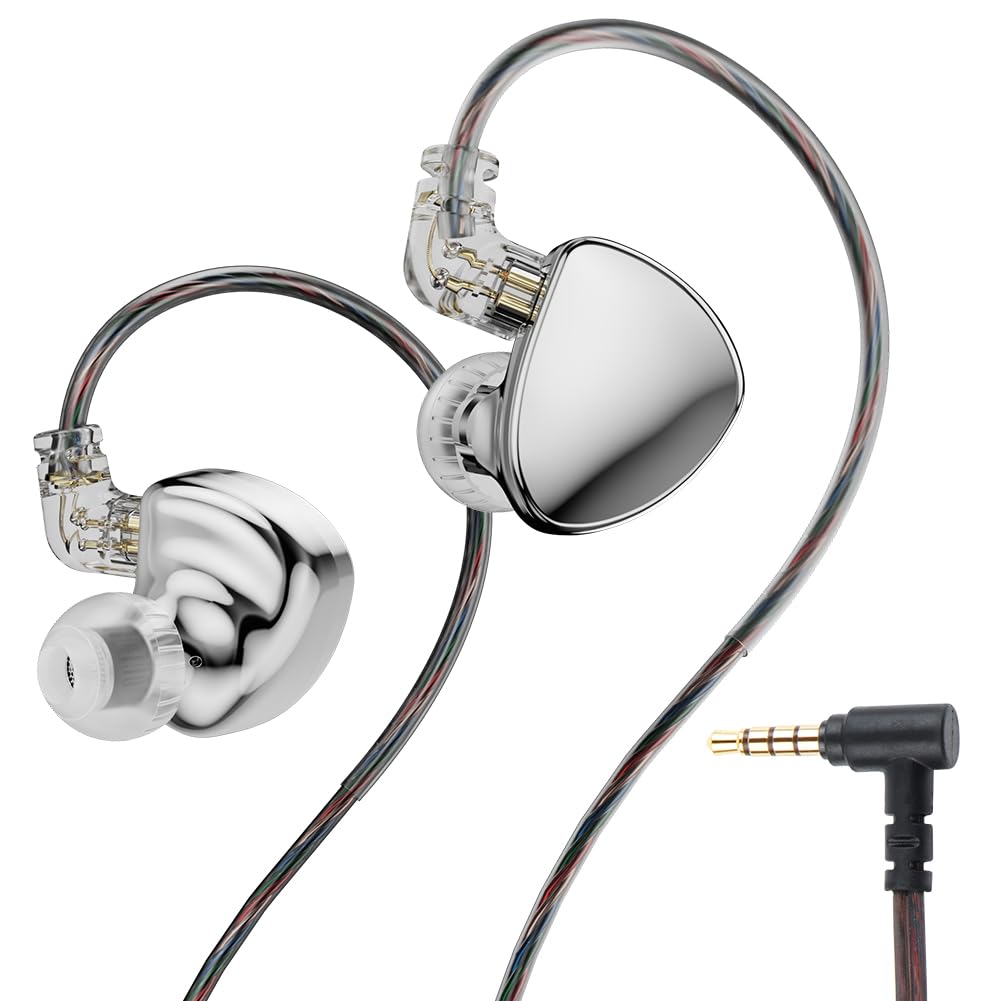 TRN MT5 イヤモニ 有線 イヤホン LCP振動板 N52デュアルチャンバー ダイナミックドライバ HiFi モニターイヤホン ハイレゾ イヤフォン 金属ハウジング ISO&Android対応 QDC脱着式ケーブル 3.5mmジャック マイク無し (シルバー)