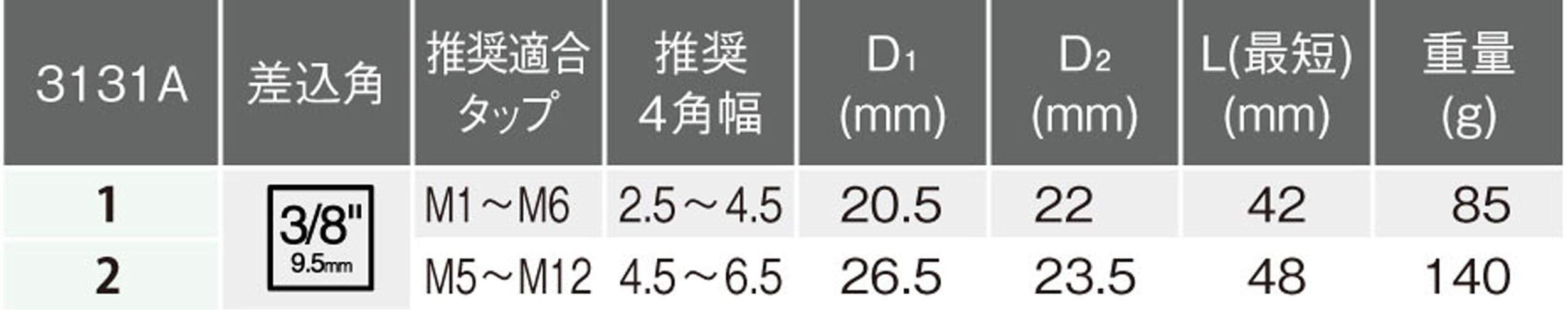 ・駆動部には3/8(9.5mm)差込角を設けてあり、シリーズ専用のT型ラチェットハンドル(160K)をはじめ、