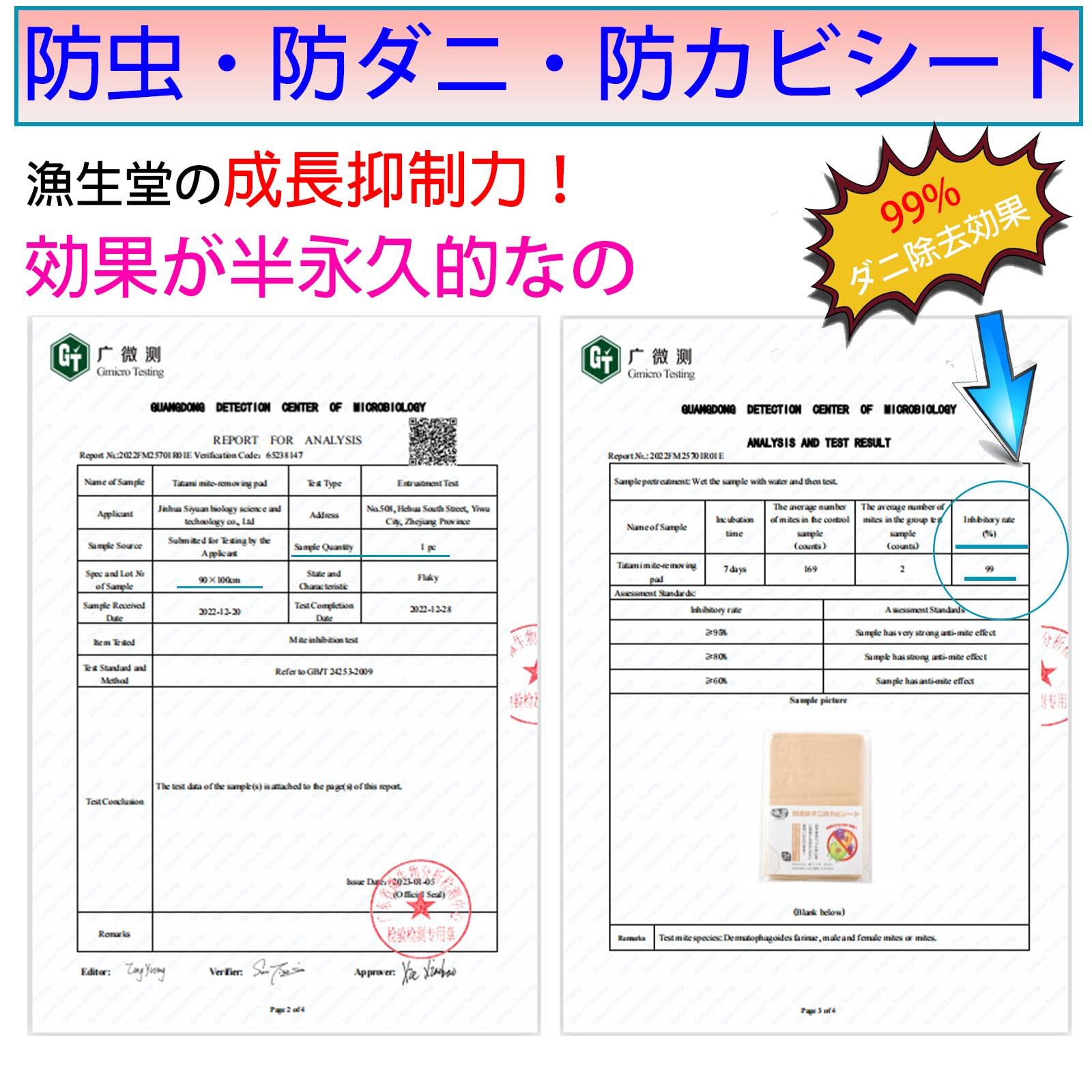 【有効成分】ホウ酸塩・ホウ素化合物(八ホウ酸二ナトリウム(DOT))・非揮発性。 防ダニ効果:食毒性(効果発揮まで14〜20日)。 防カビ効果:殺菌作用(全てのカビに対して効果があるわけではございません)。含浸量:5,000mg/㎡。