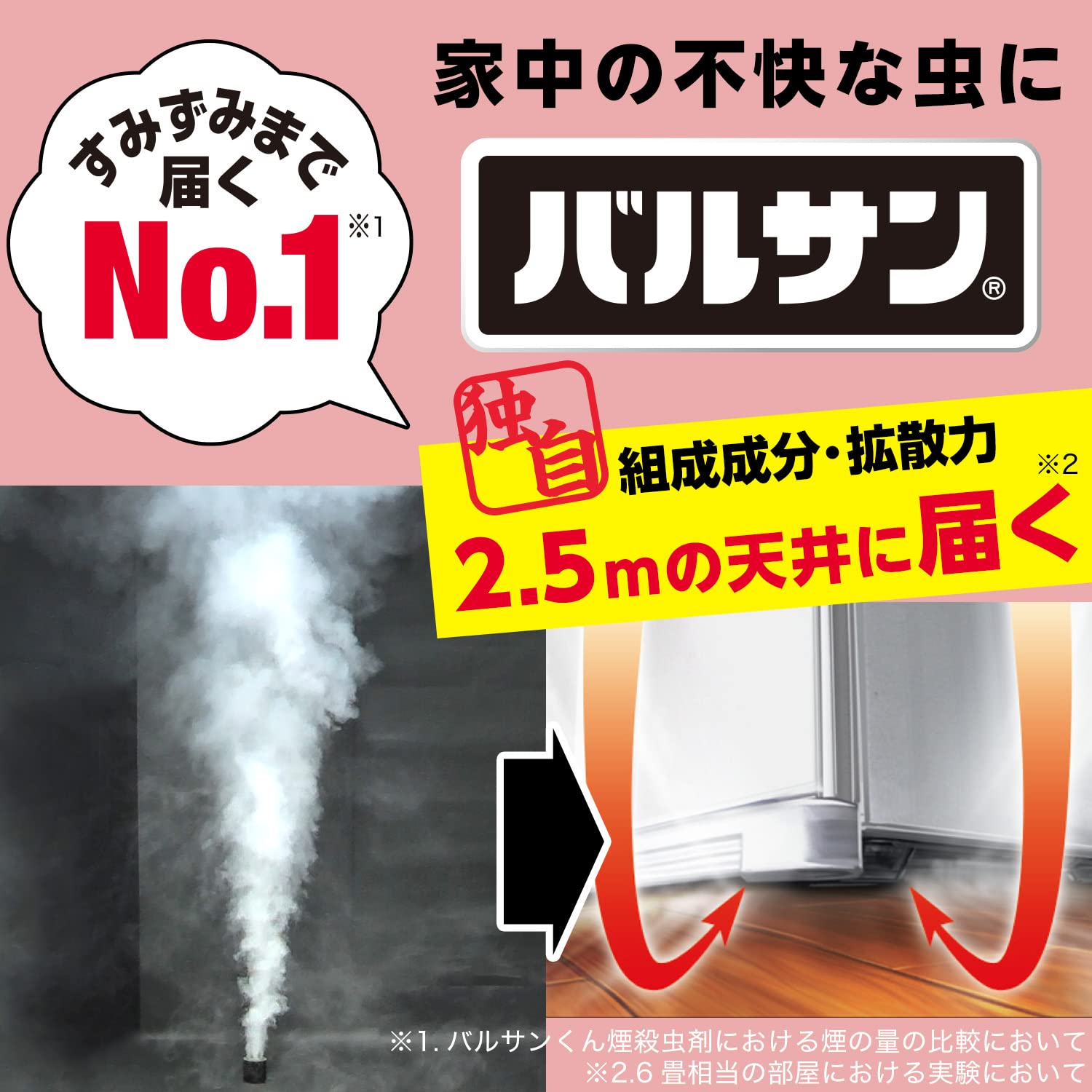 ●バルサン独自の強力な噴射力で、お部屋のスミズミまで煙が届き、隠れた不快害虫によく効きます。
