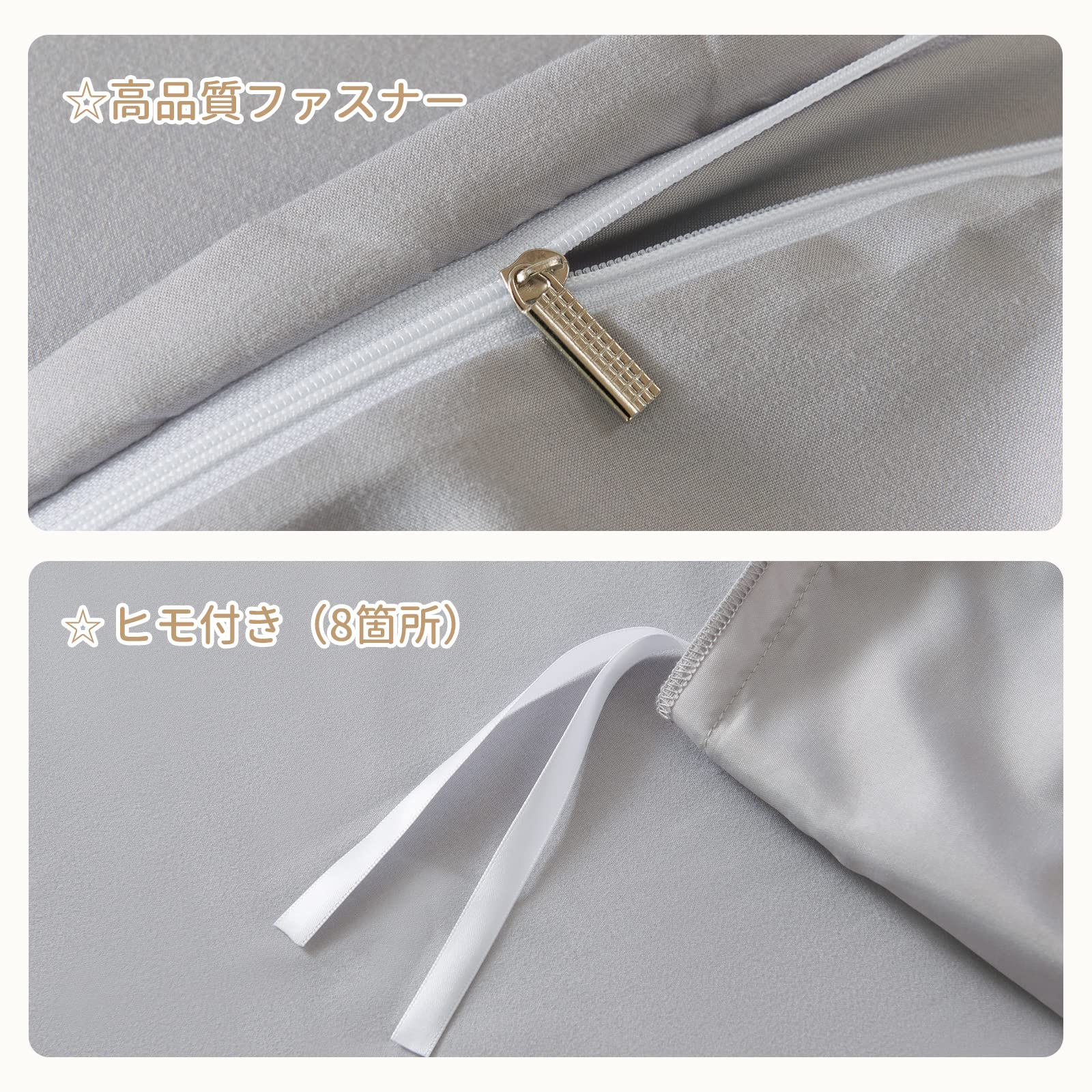 HOdo Home 掛け布団カバー セミダブル オールシーズン 布団カバー 肌にやさしい ピーチスキン加工 通気速乾 抗菌防臭 静電気防止 丸洗いOK 着脱簡単 ふとんカバー ライトグレー