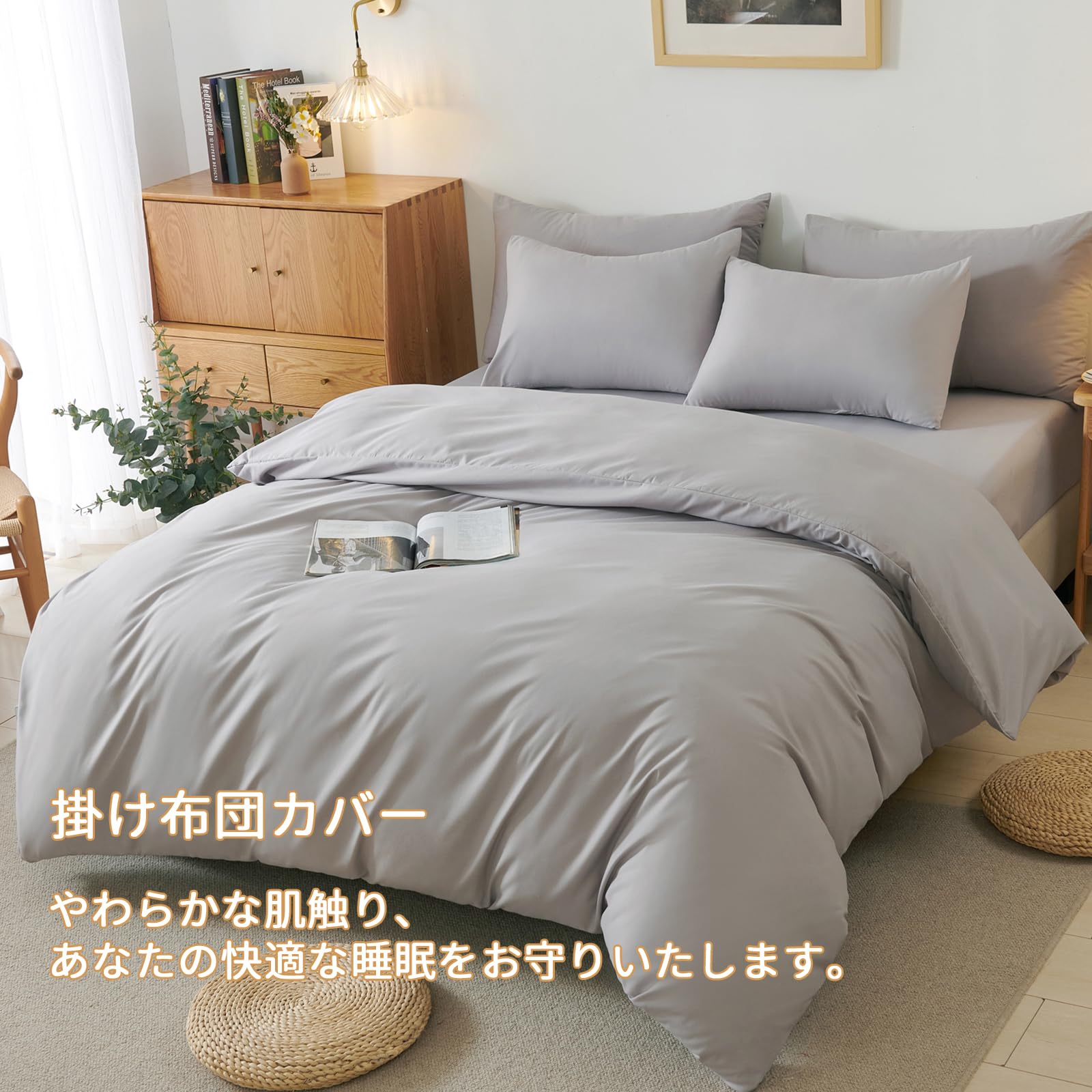 【在庫のみ】HOdo Home 掛け布団カバー セミダブル オールシーズン 布団カバー 肌にやさしい ピーチスキン加工 通気速乾 抗菌防臭 静電気防止 丸洗いOK 着脱簡単 ふとんカバー ライトグレー