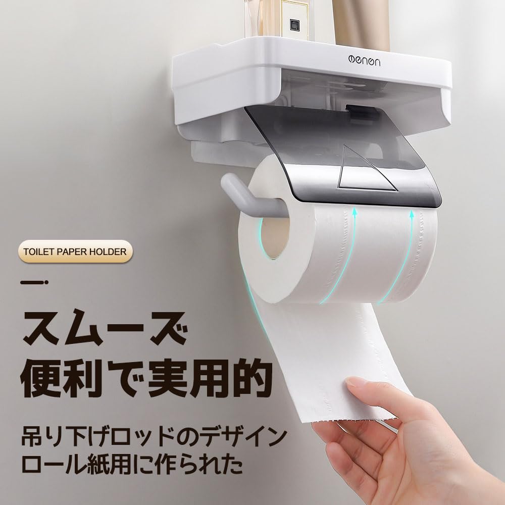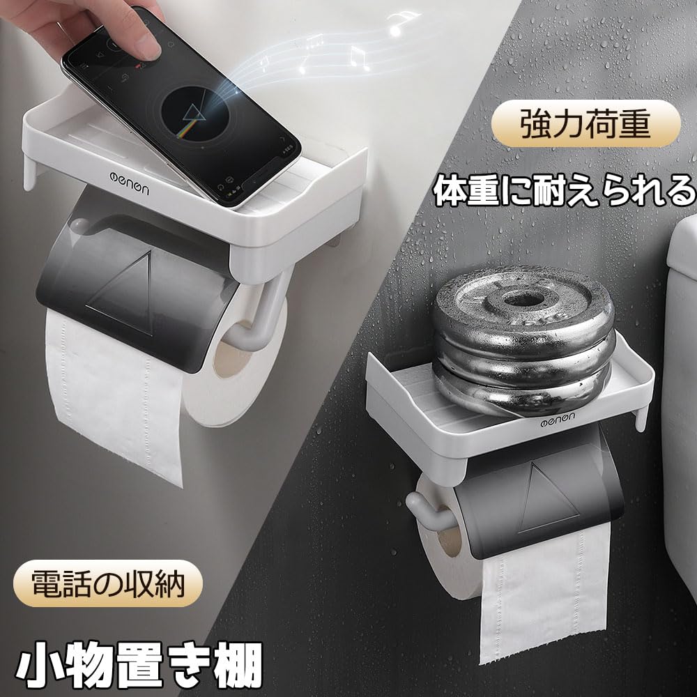 【小物を置くて大変便利】:ペーパーホルダーは小物置き棚があり、スマホやお財布、生理用品などの小物を置くのに大変便利です。