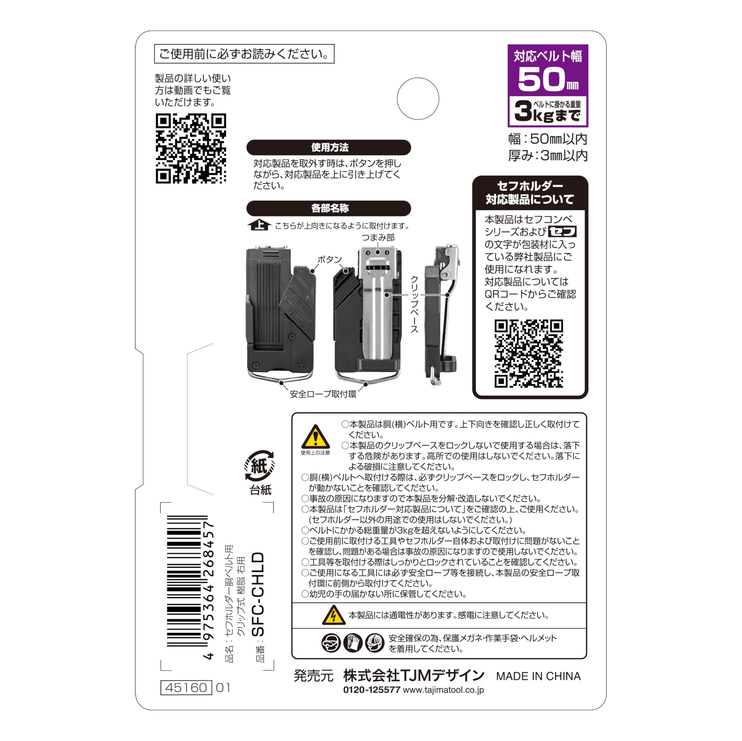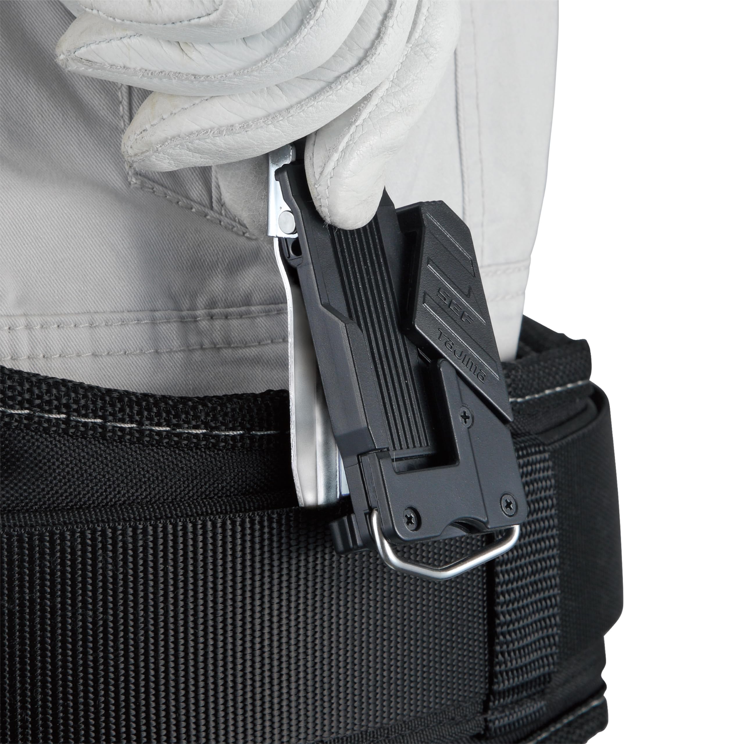 【特価処分】タジマ セフシステム セフホルダー胴ベルト用 クリップ式 樹脂 右用 SFC-CHLD 作業着のポケットや腰袋のフチにも取付可能 セフが不意に外れにくいロック機構付 安全ロープ取付環付 軽さ重視の樹脂タイプ