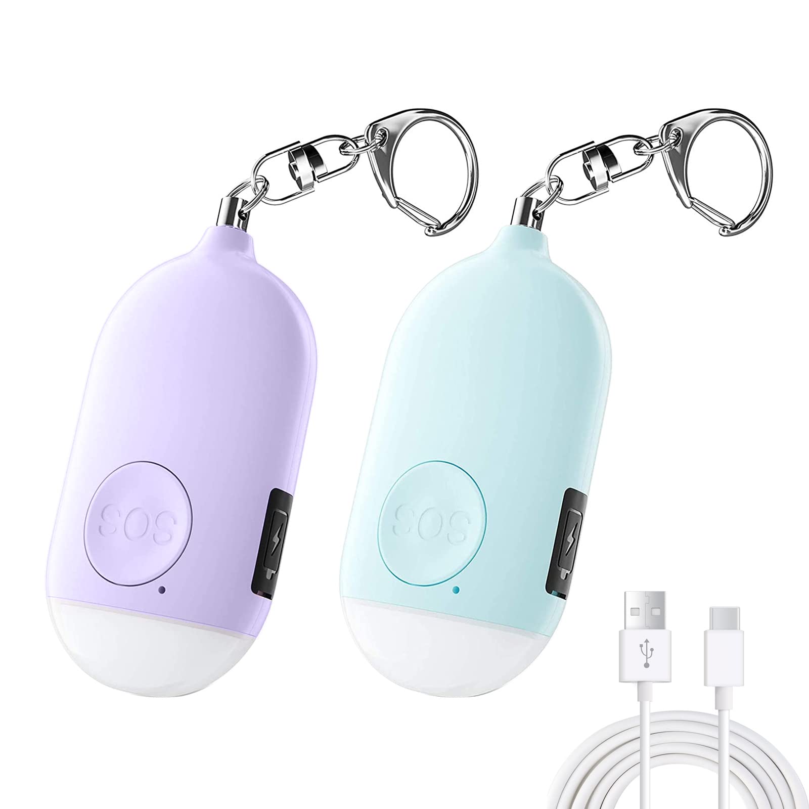 防犯ブザー【2個セット 紫+青】 LEDライト付き 防犯アラーム USB充電式 大音量130dB 防水 防犯 ブザー 小学生 女の子 男の子 女性 大人 子供 ランドセルにつける