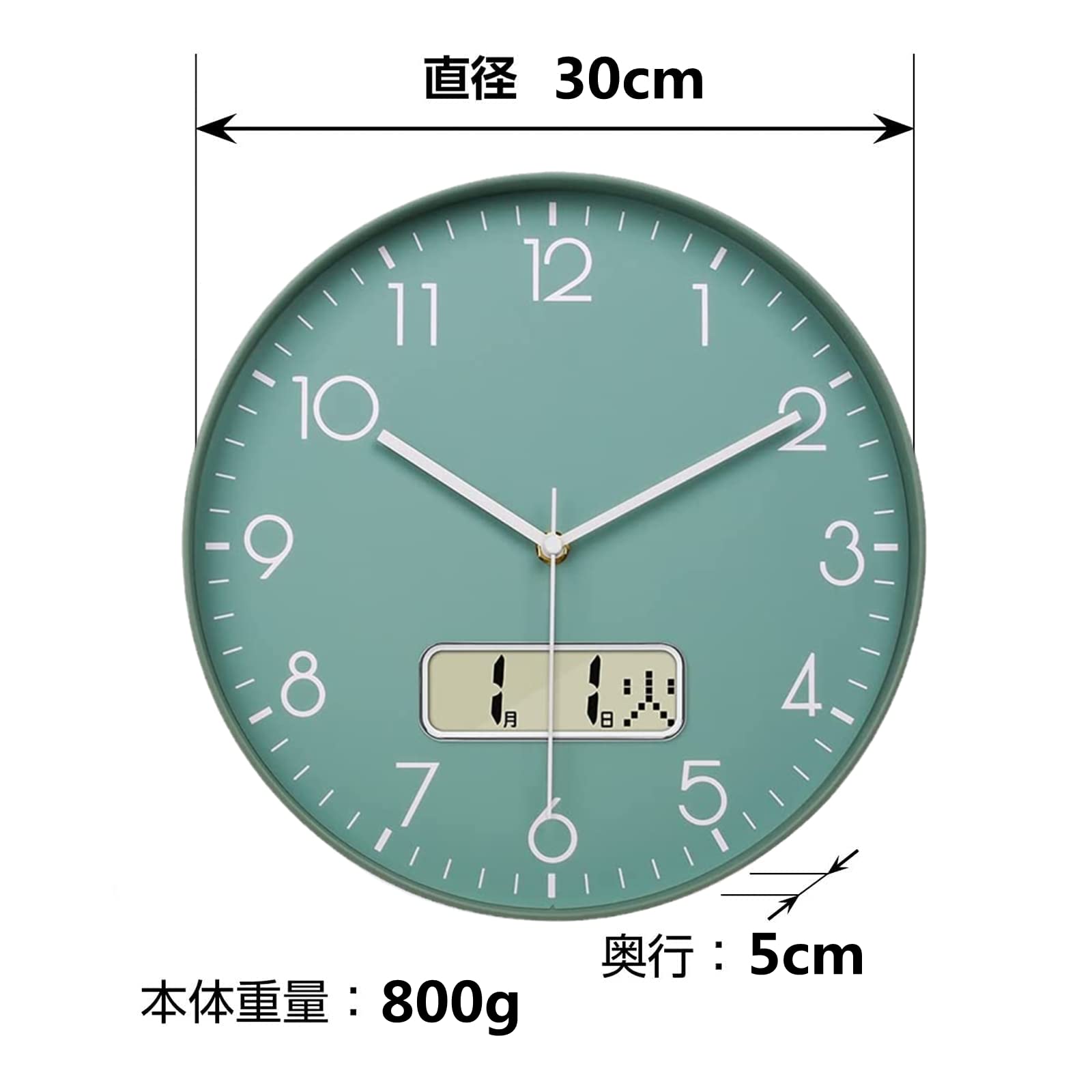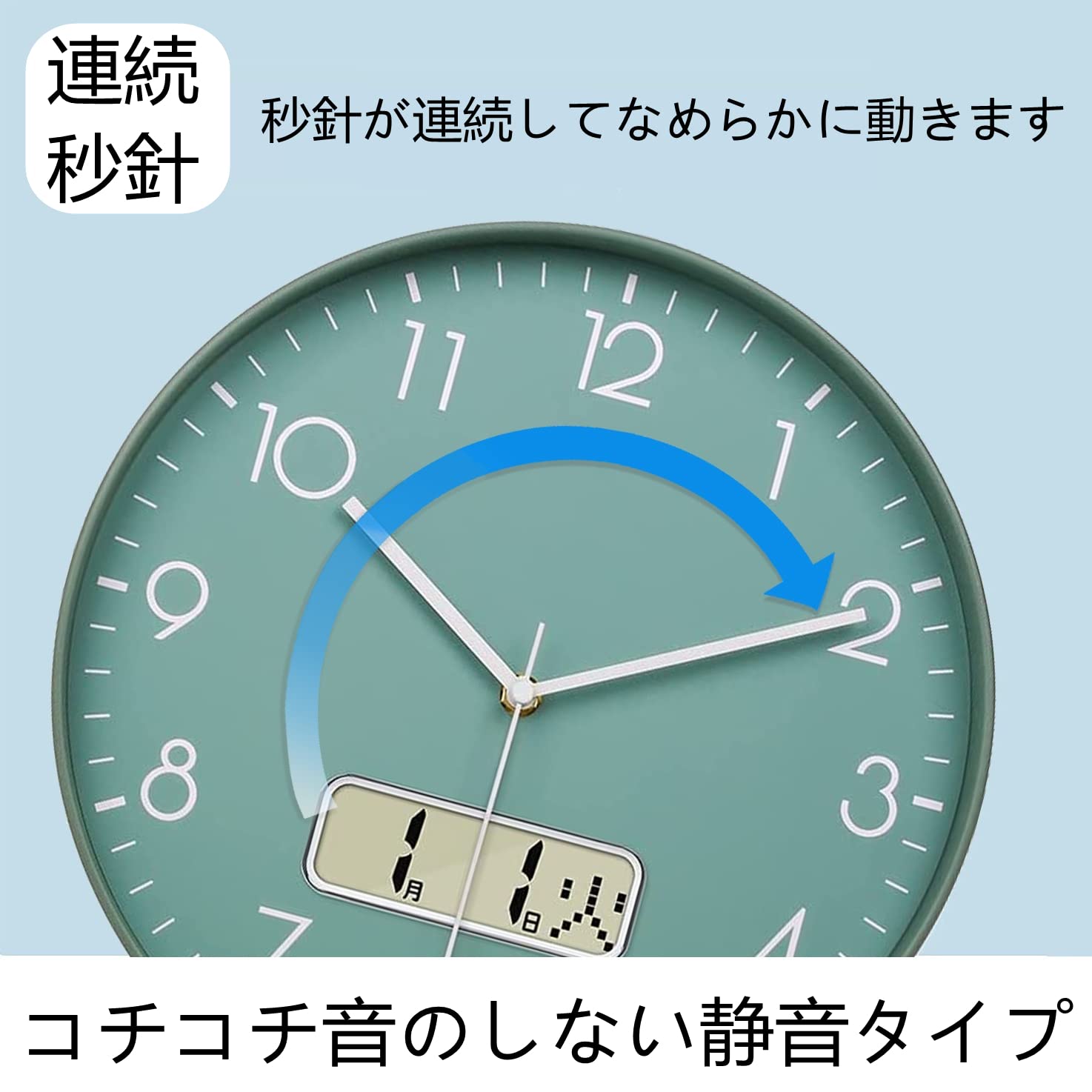 掛け時計 アナログ おしゃれ 静音 日付 曜日表示 直径30cm 壁掛け 時計 北欧 連続秒針