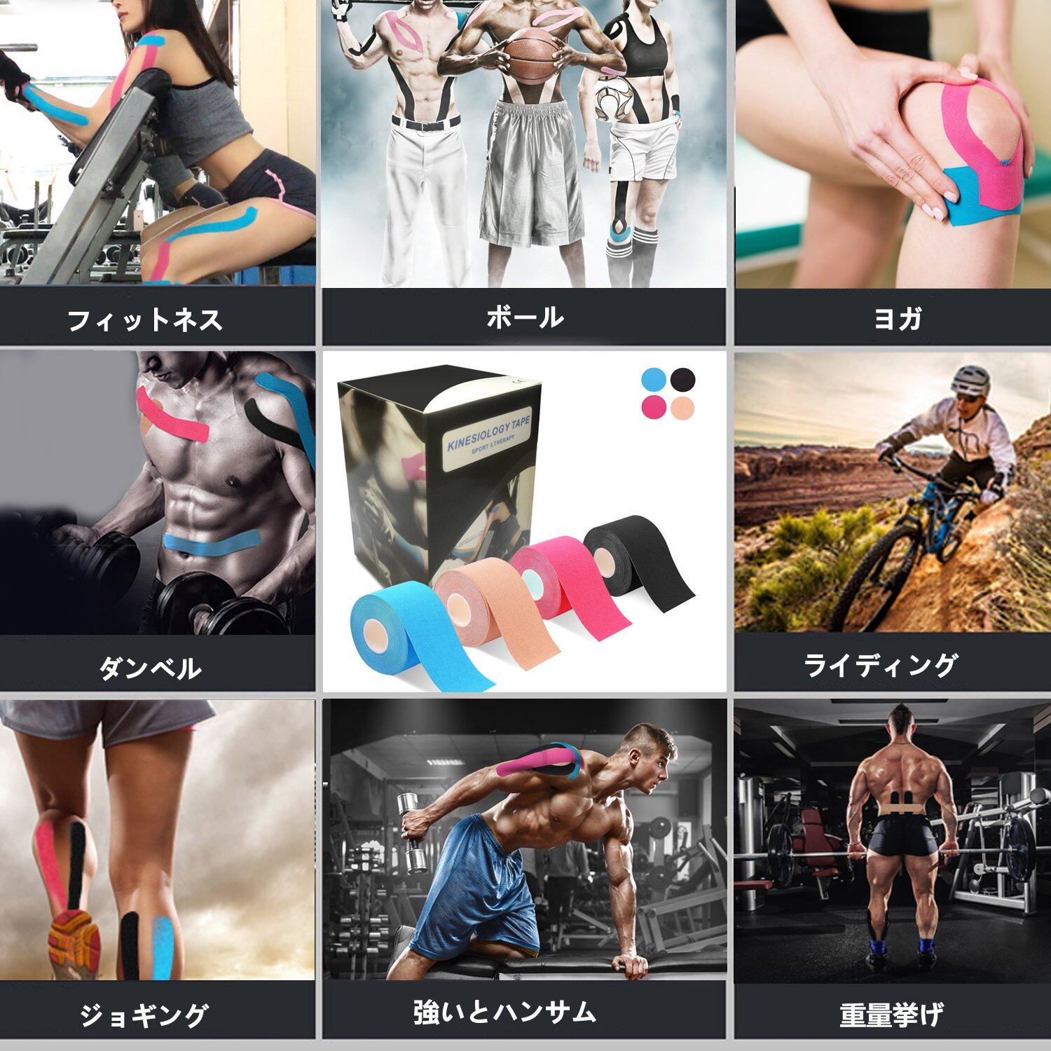 テーピングテープ キネシオ テープ 筋肉・関節をサポート 伸縮性強い 汗に強い パフォーマンスを高める