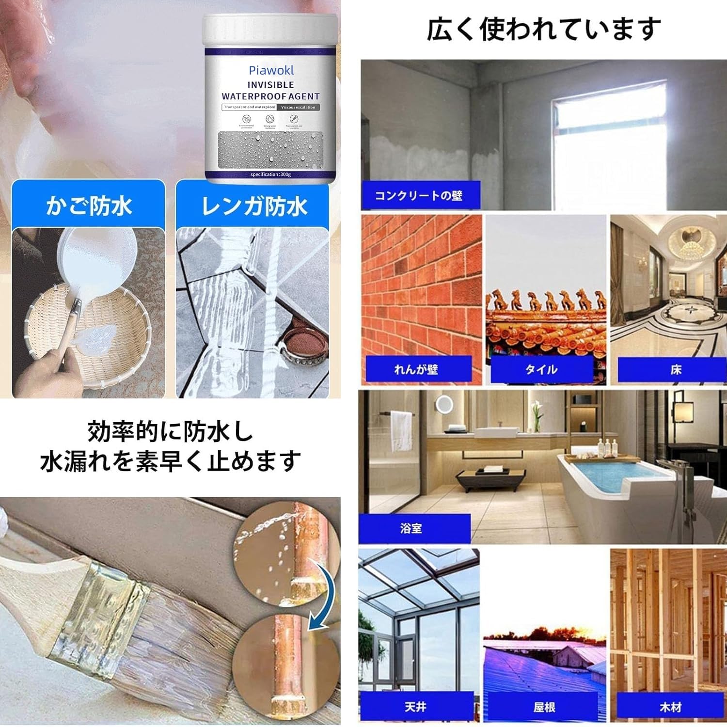 【万能防水接着剤】透明仕様、見た目抜群、高温に強い、ひび割れ防止!3分速乾の透明防水塗料!床、屋根、壁、トイレ、水道管など、水漏れする対象物の表面に塗るだけで防水層を形成し、水漏れの問題を解決!