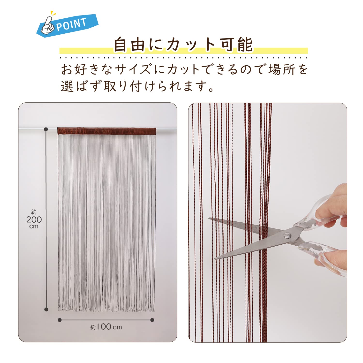 アストロ ストリングカーテン ブラウン 約幅100×丈200cm 洗濯機で洗えて清潔 目隠しやプライバシー保護に部屋の間仕切りとして 好みの長さにカットできる リビングやキッチンや玄関などのインテリアに ひもカーテン 糸カーテン ひもスクリーン スクリーンカーテン ラインカーテン ひものれん 530-33