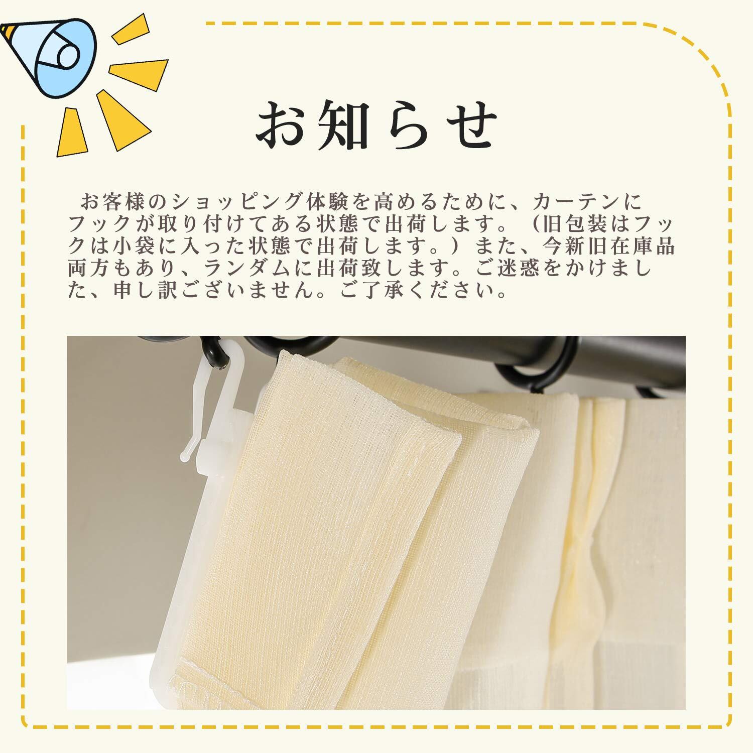 【取り付け簡単】:レースカーテンにプラスチック製のカーテンフックが付けてあったので、取り付けがあっという間です。※タッセルは付属しません。