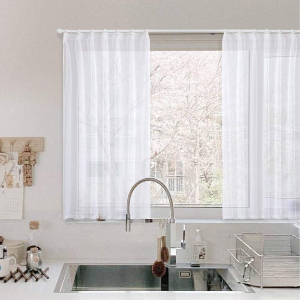 【特価処分】Topfinel レースカーテン UVカット 無地 幅150x丈130cm 1枚り ホワイト (全7サイズ5色)