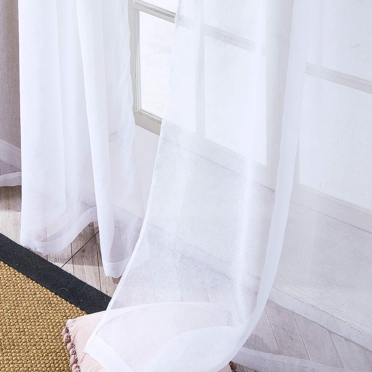 【新着特価】Topfinel レースカーテン UVカット 無地 幅100x丈110cm 2枚組 ホワイト (全7サイズ5色)