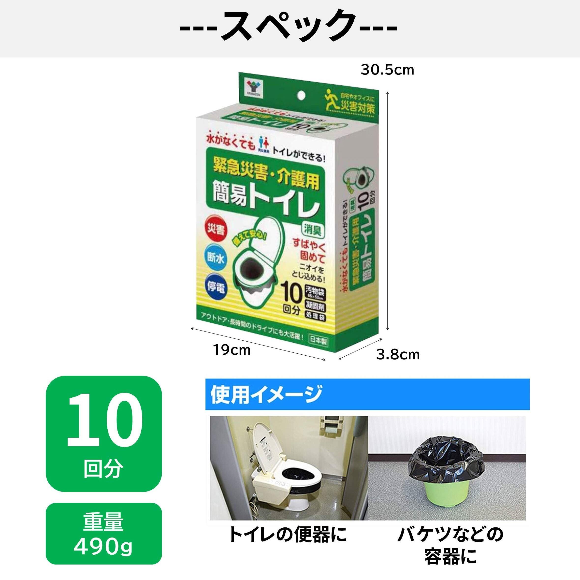 山善(YAMAZEN) 簡易トイレ 【日本製】 10回分 (凝固剤/汚物袋/処理袋) 携帯トイレ 災害用トイレ 防災 断水 介護 非常用 簡易トイレ用ウエルポリマー12g YKT-10