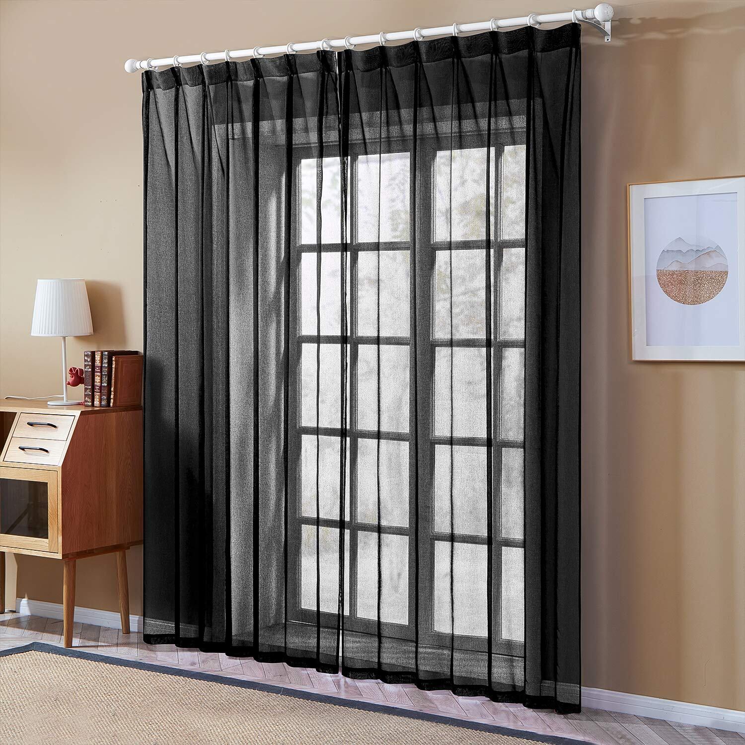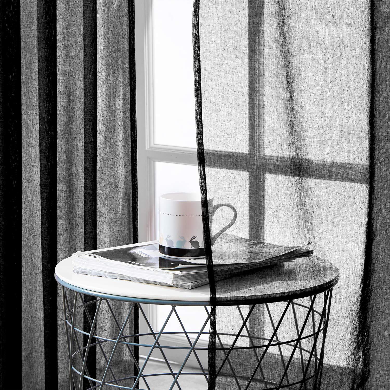【新着特価】Topfinel レースカーテン 無地 UVカット ブラック 幅100x丈178cm 2枚組