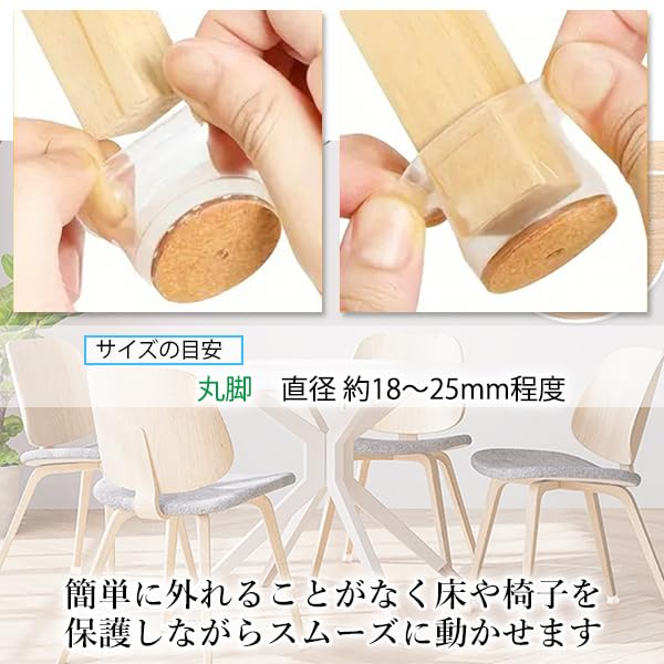 【商品説明】 ・【フェルトパッド】椅子足カバーは椅子足のエッジをフェルトパッドど柔らかいシリコンで包み込むため、耐久性があり、簡単に裂けることがありません。金属製と木製の椅子の脚にフィットします。底部のフェルトにより、床の傷を防ぐことができます。また、騒音を軽減し、静かな環境を提供します。 ・【簡単装着、スムーズに滑る】 柔らかいシリコン製の椅子足カバーは、道具なしで簡単に取り付けられます。簡単に外れることはありませんので、床や椅子や家具を保護しながらスムーズに動かすことができます。 ・【サイズの範囲】丸脚の直径18〜25mm以内