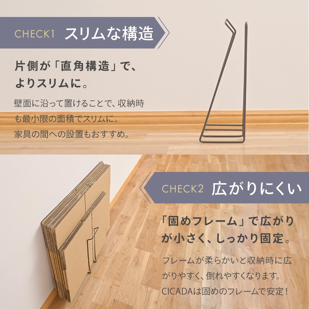 [CICADA] 段ボールストッカー スリム 大容量 薄型 段ボール ストッカー ダンボールストッカー 段ボールラック 壁際専用 省スペース (アイボリー)