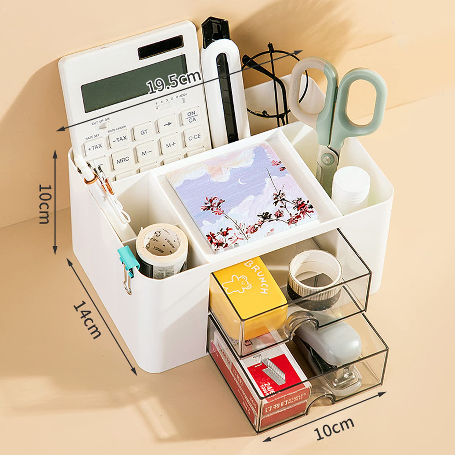 【特価処分】Tumosando デスクオーガナイザー 卓上収納 組立不要 ペン立て 引き出し付き リモコンラック 多機能 小物入れ 文房具 収納 幅195mm×奥140mm×高100mm デスク周り 整理整頓 ペン立て 大容量 使い勝手良いです