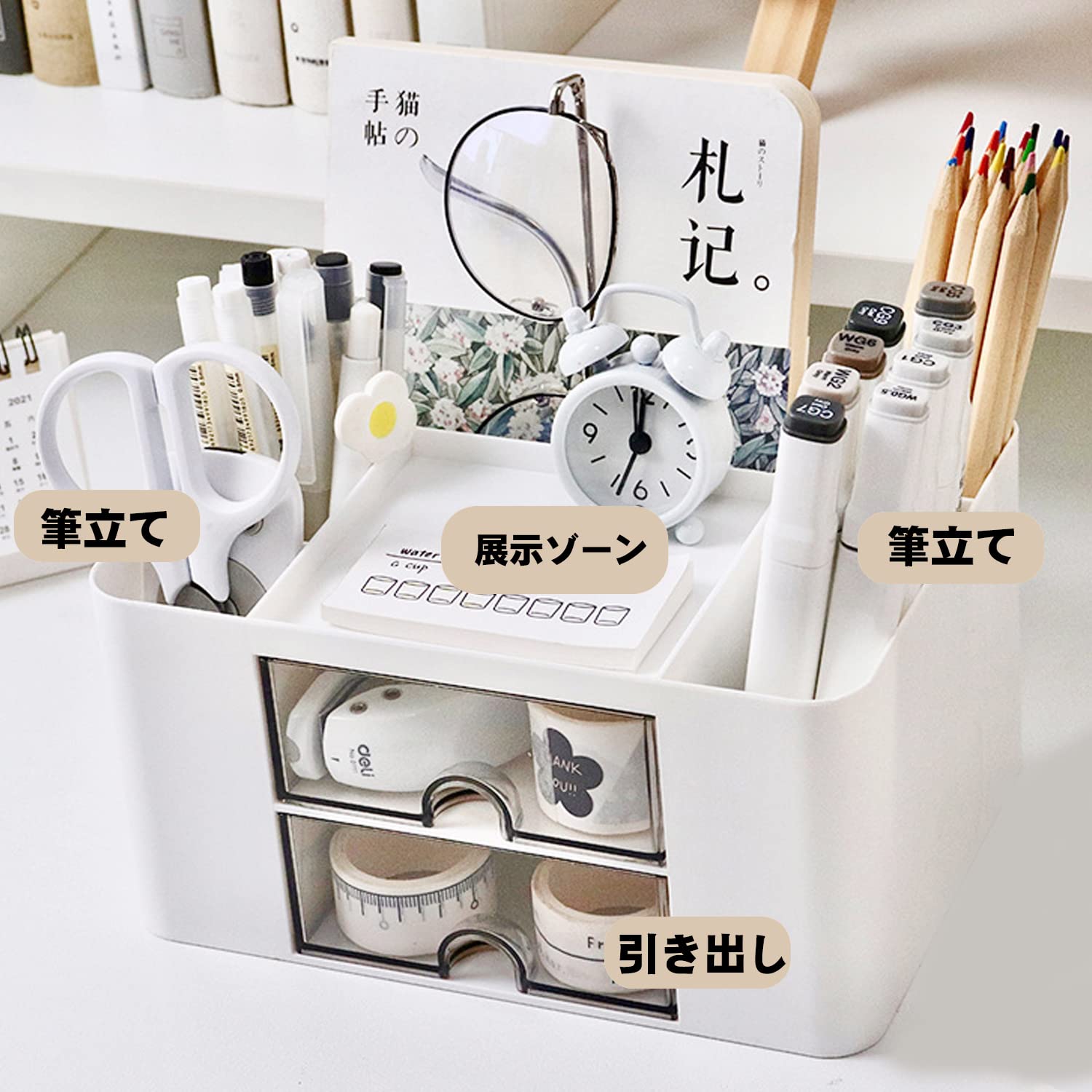 【多機能】文房具、化粧品、リモコン、眼鏡、小物、おもちゃのなどをすっきり収納出来ます。自宅や職場のデスクの上の整理整頓に最適です。