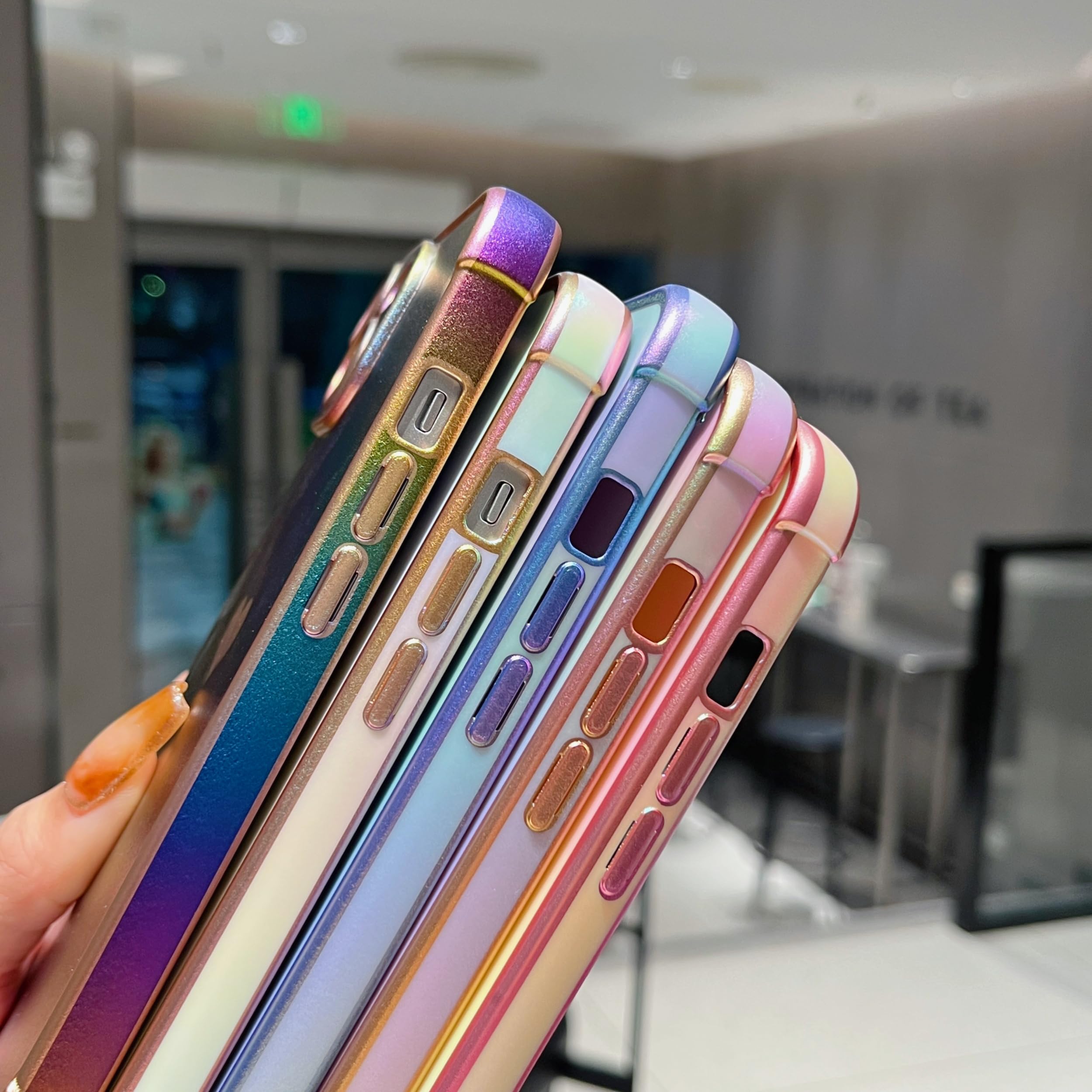 ZTOFERA iPhone 15 用 ハートケース iPhone 15 ケース 柔軟な TPU シリコン スマホケース メッキ加工 エッジ ラグジュアリー 蛍光色 虹色 マット カバー ソフト 軽量 耐衝撃 おしゃれ 韓国 可愛い アイフォン 15 ケース 女子 女性 心パターン 携帯電話カバー ワイヤレス充電対応 (虹色の紫)