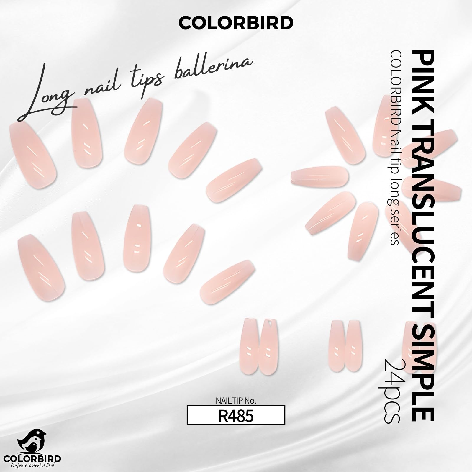 【新着特価】COLORBIRD ネイルチップ ロング 24枚 ピンク ネイル 付け爪 チップ 短め 可愛い バレリーナ (R485)