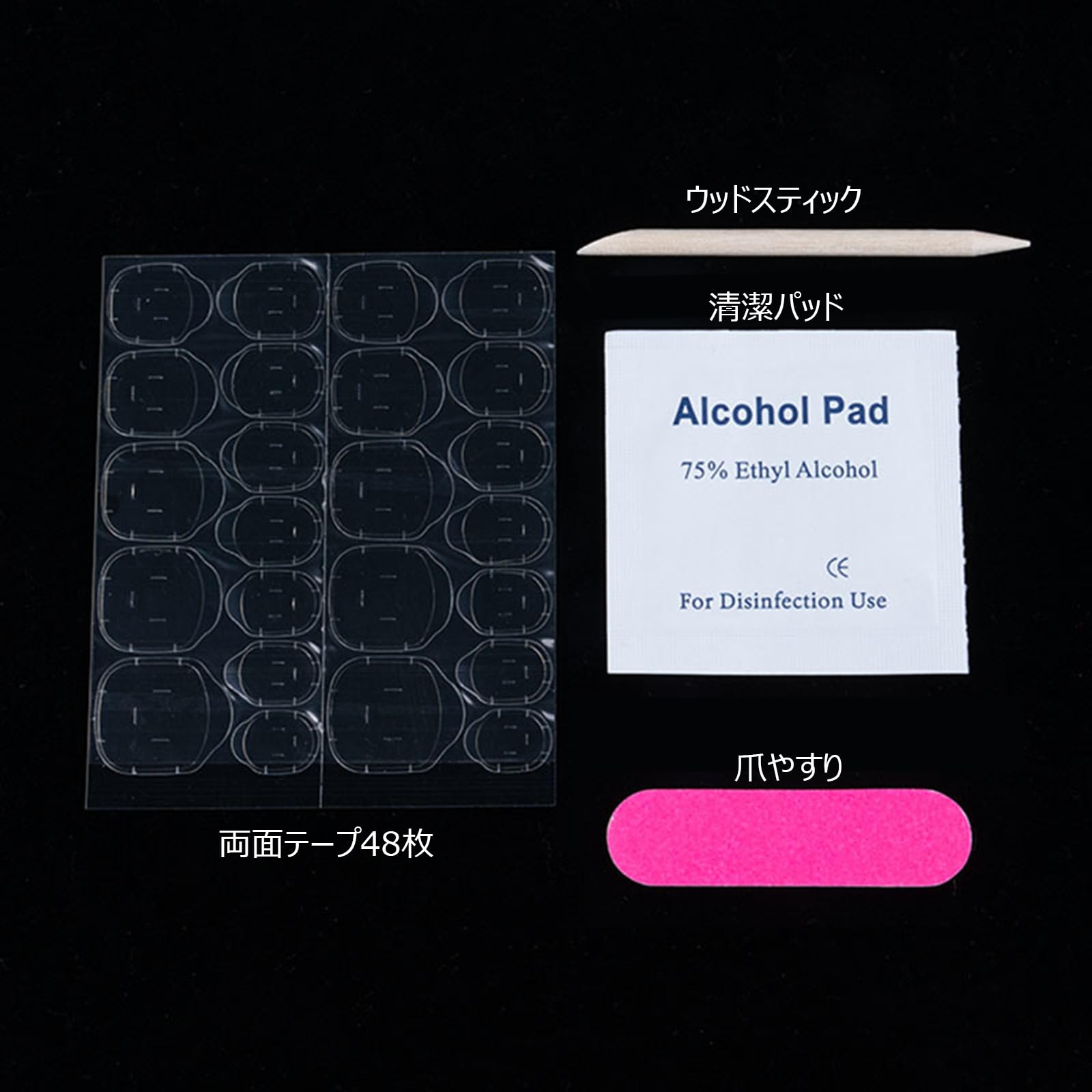 【ネイルチップセット】ネイルチップ24枚+ネイル用両面テープ+ネイルファイル(爪やすり)1個+取り外し用ウッドスティック1個
